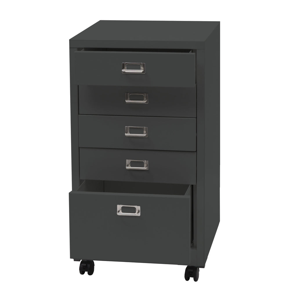 Caisson à tiroirs meuble de bureau 75 x 40 x 41 cm 5 tiroirs en métal gris foncé 04_0008270