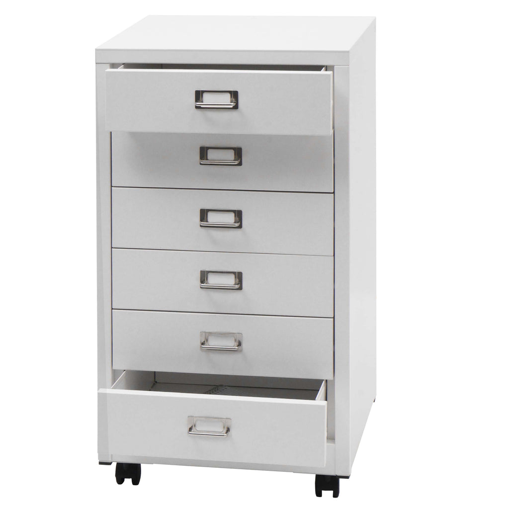 Caisson à tiroirs armoire de bureau 75 x 40 x 41 cm 6 tiroirs métal blanc 04_0008272
