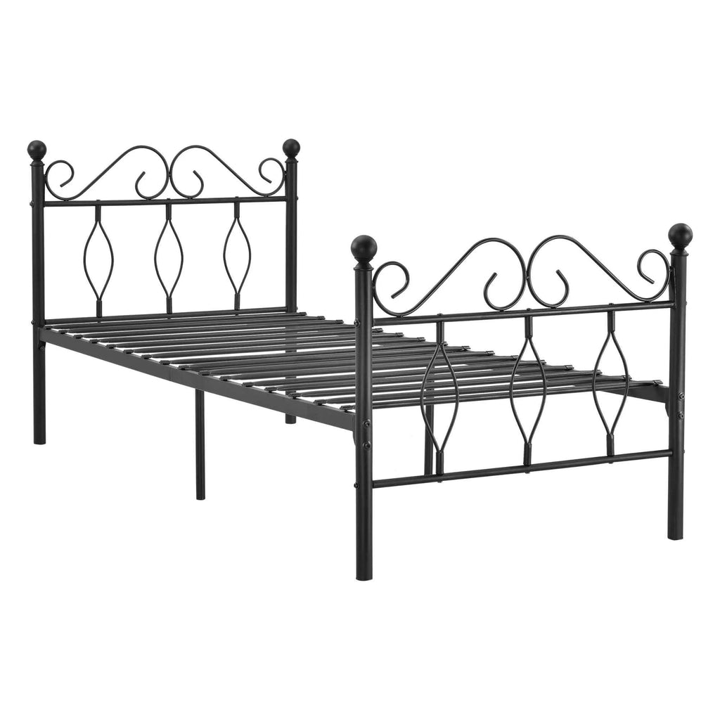 Lit simple une personne en métal solide avec lattes métalliques noir 90 x 200 cm LIT03001