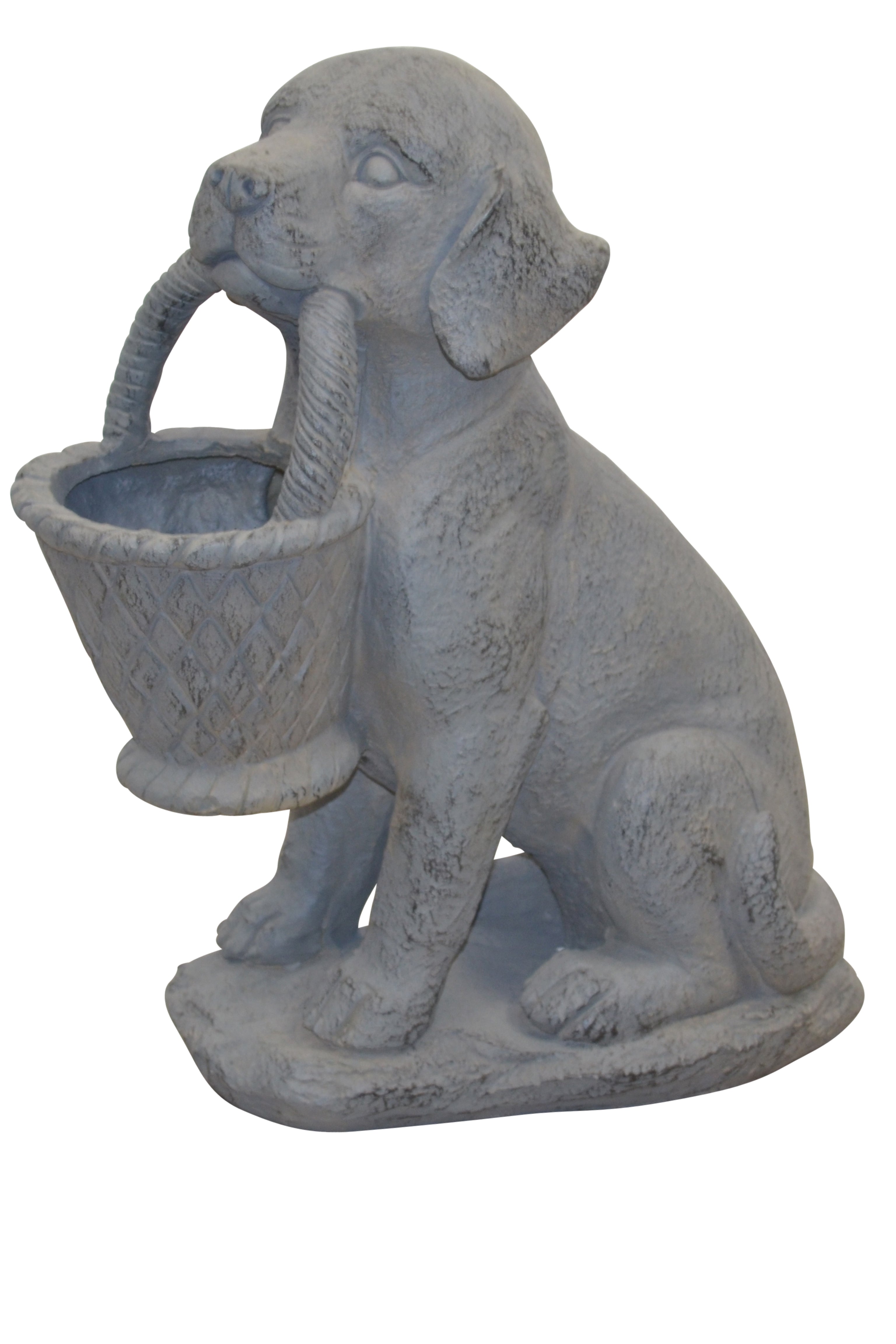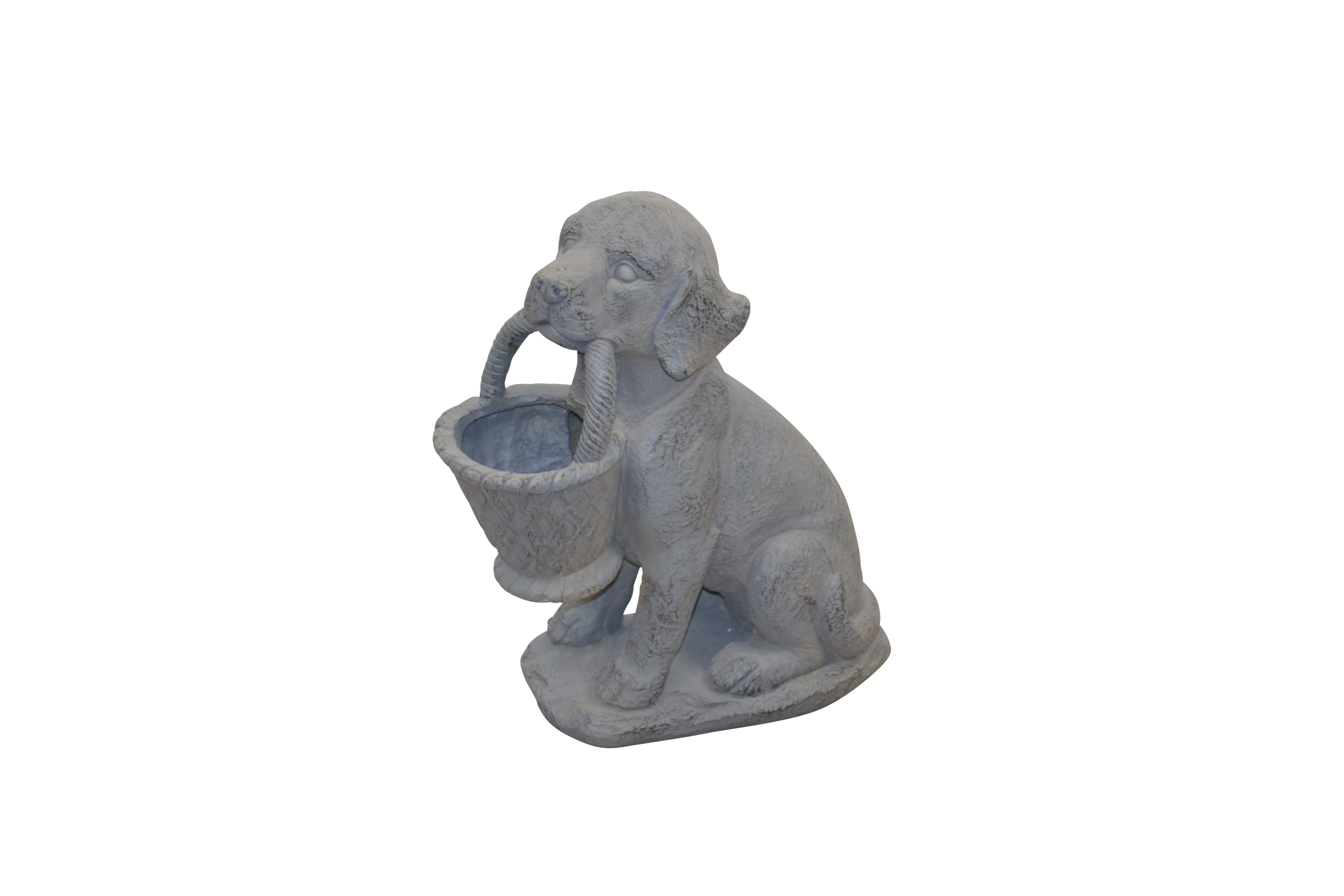 Cache-pot décoratif chien avec panier – Finition gris ciment DEC050058