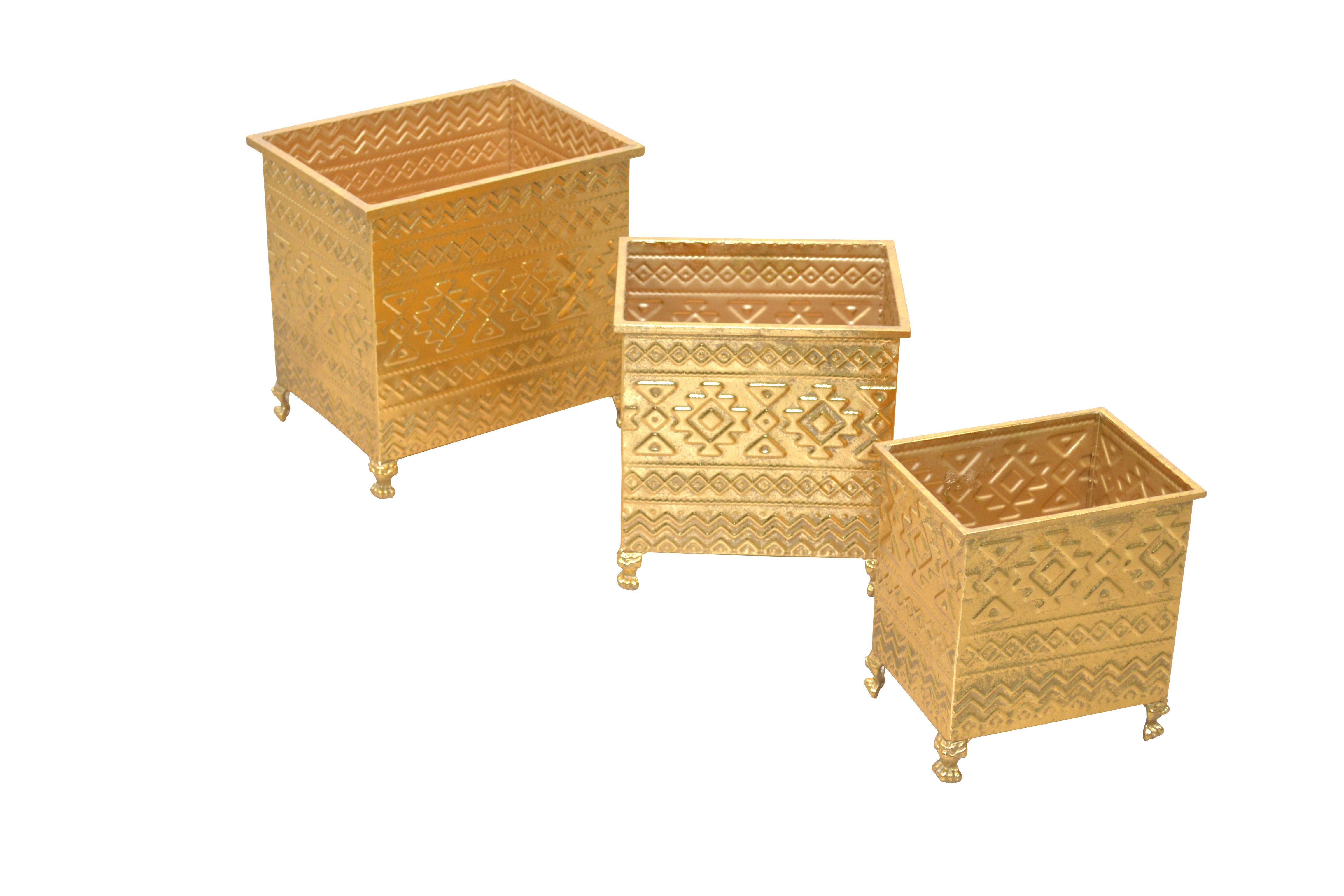 Ensemble de 3 cache-pots décoratifs en métal – Doré, richement orné DEC050060