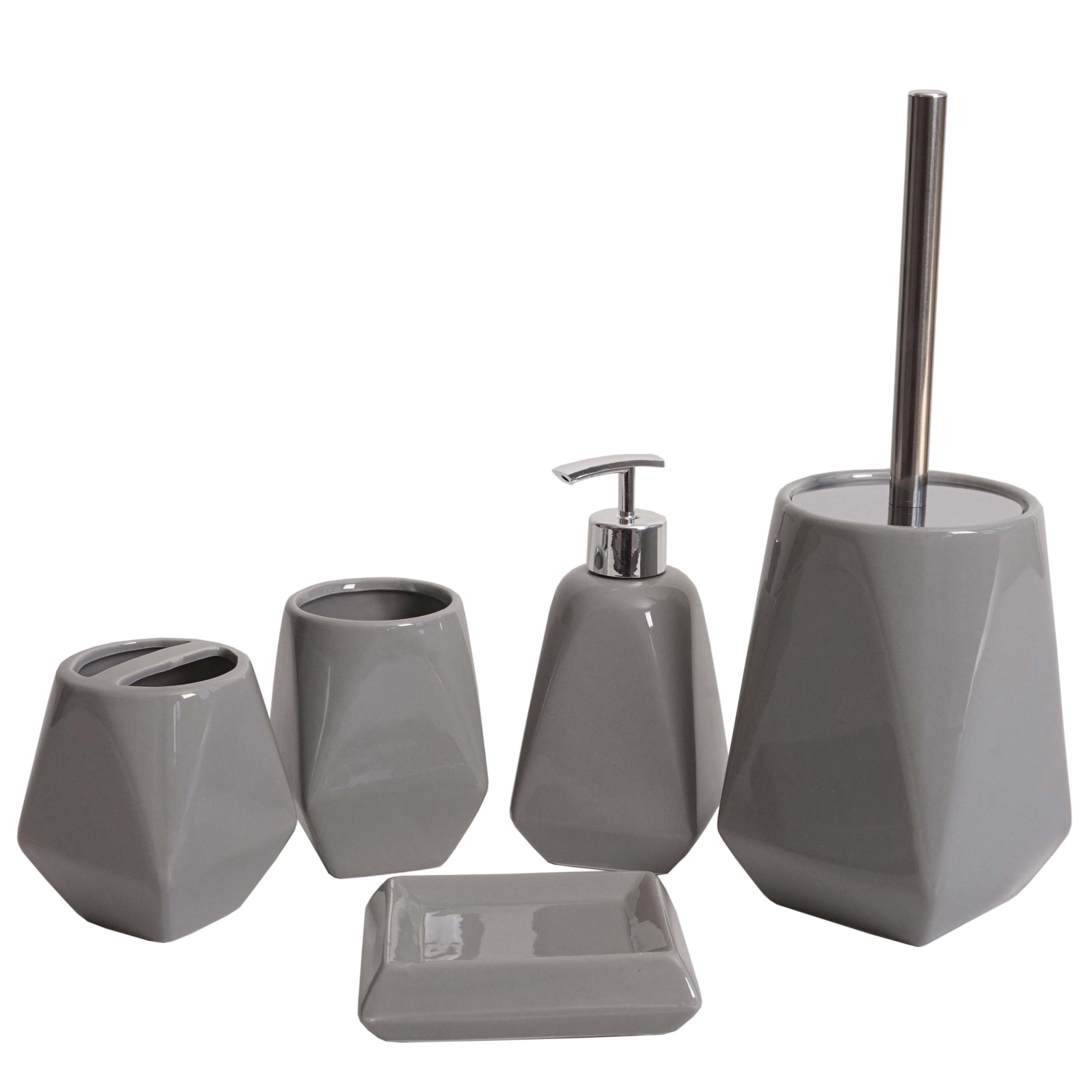 Lot de 5 accessoires de salle de bain modernes 33 x 10 x 10 cm design épuré en céramique gris 04_0010637