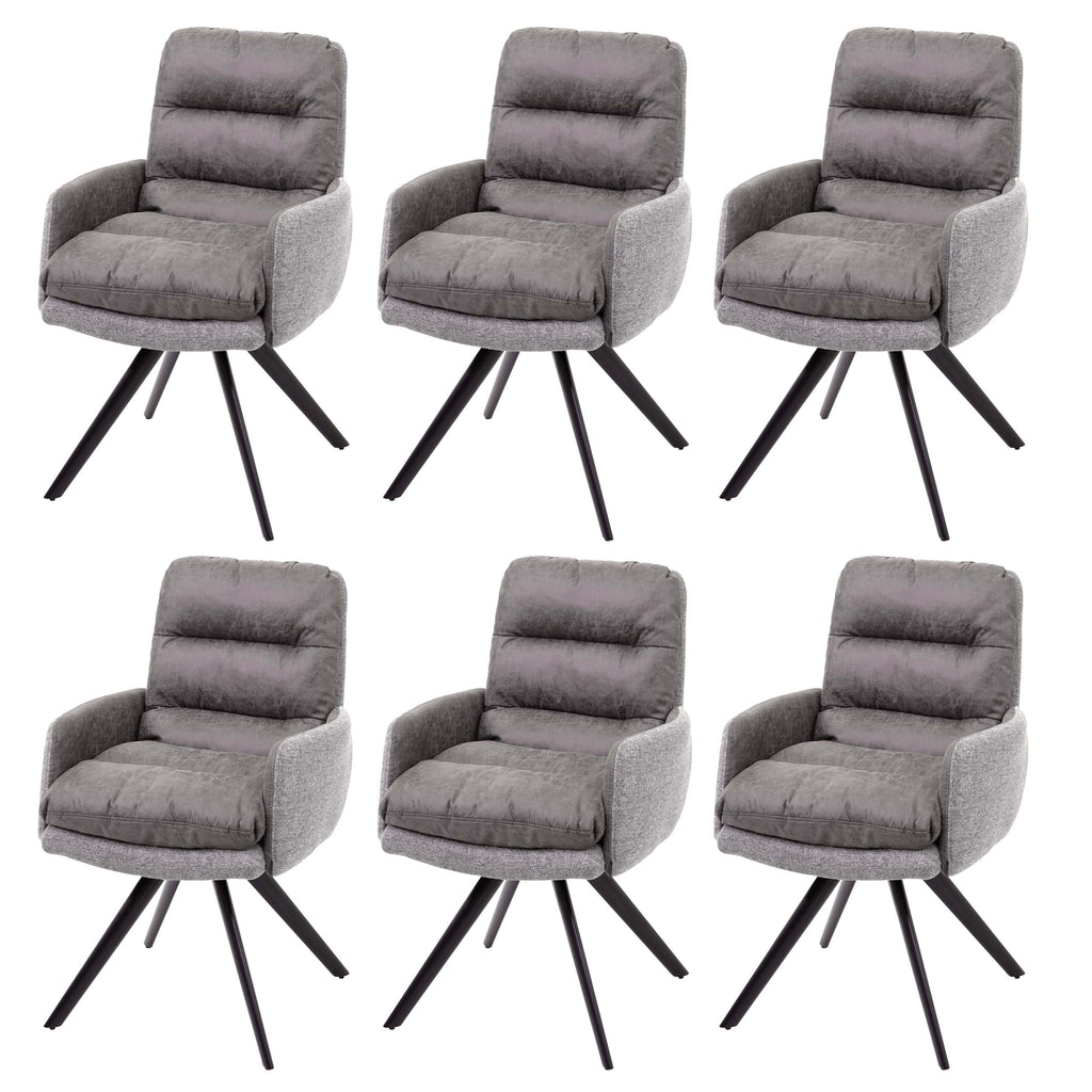 6x chaises de salle à manger fauteuil lounge avec accoudoir confortable rotative en tissu gris clair 04_0000860