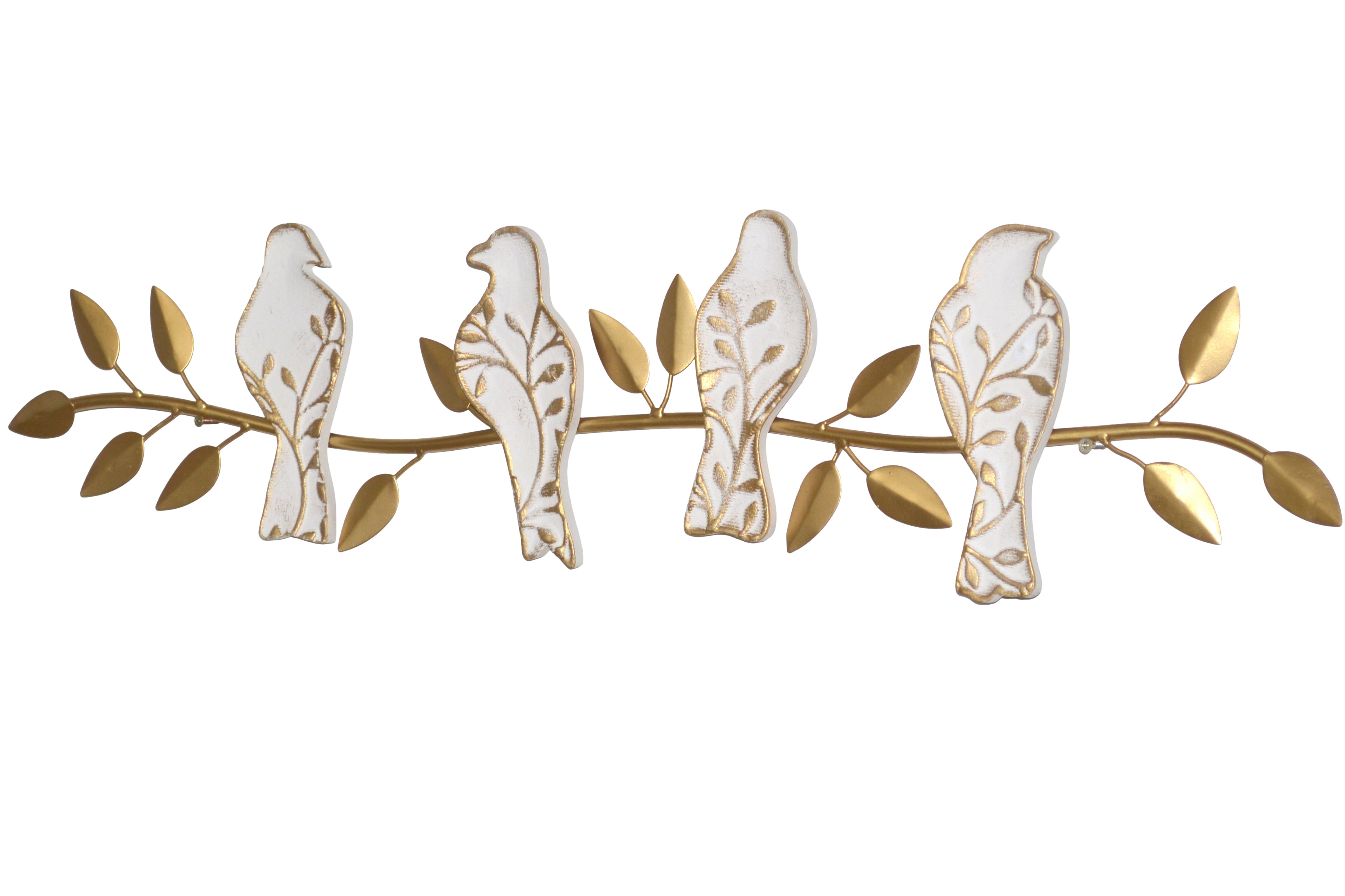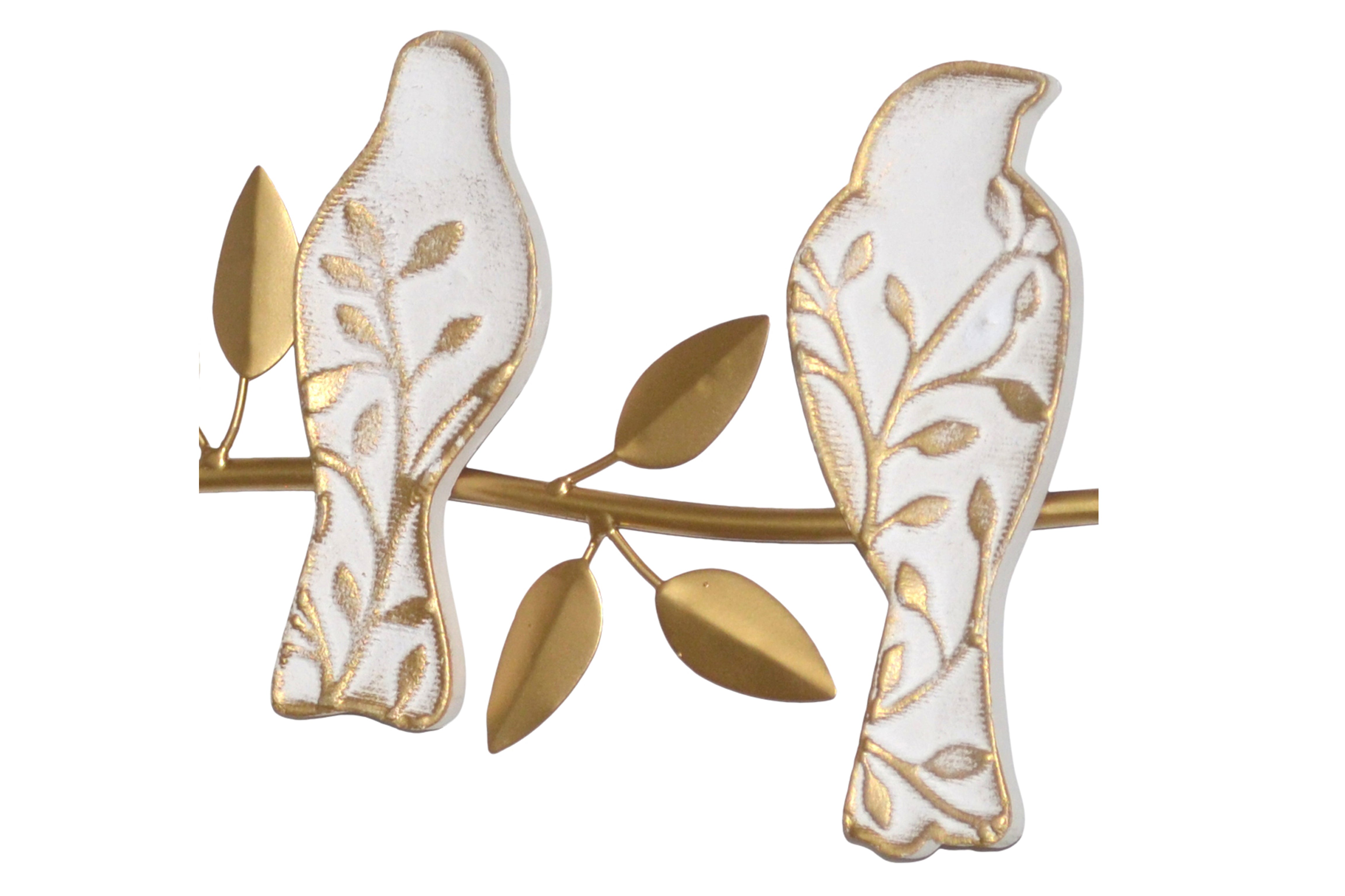 Décoration Murale « Oiseaux » Charme Naturel et Dorures Élégantes MDF laqué crème antique et métal DEC050019