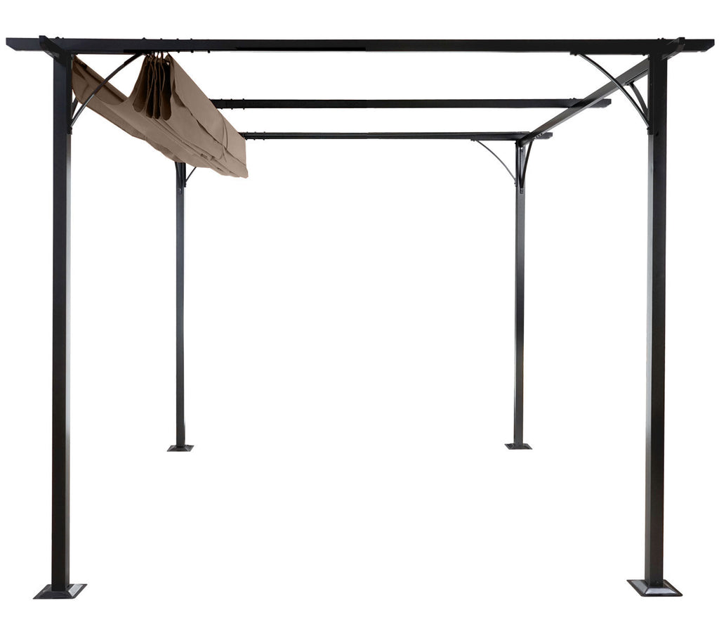 Pergola avec toit coulissant pavillon de jardin structure stable 6cm + toit coulissant 3x3m marron taupe 04_0004115