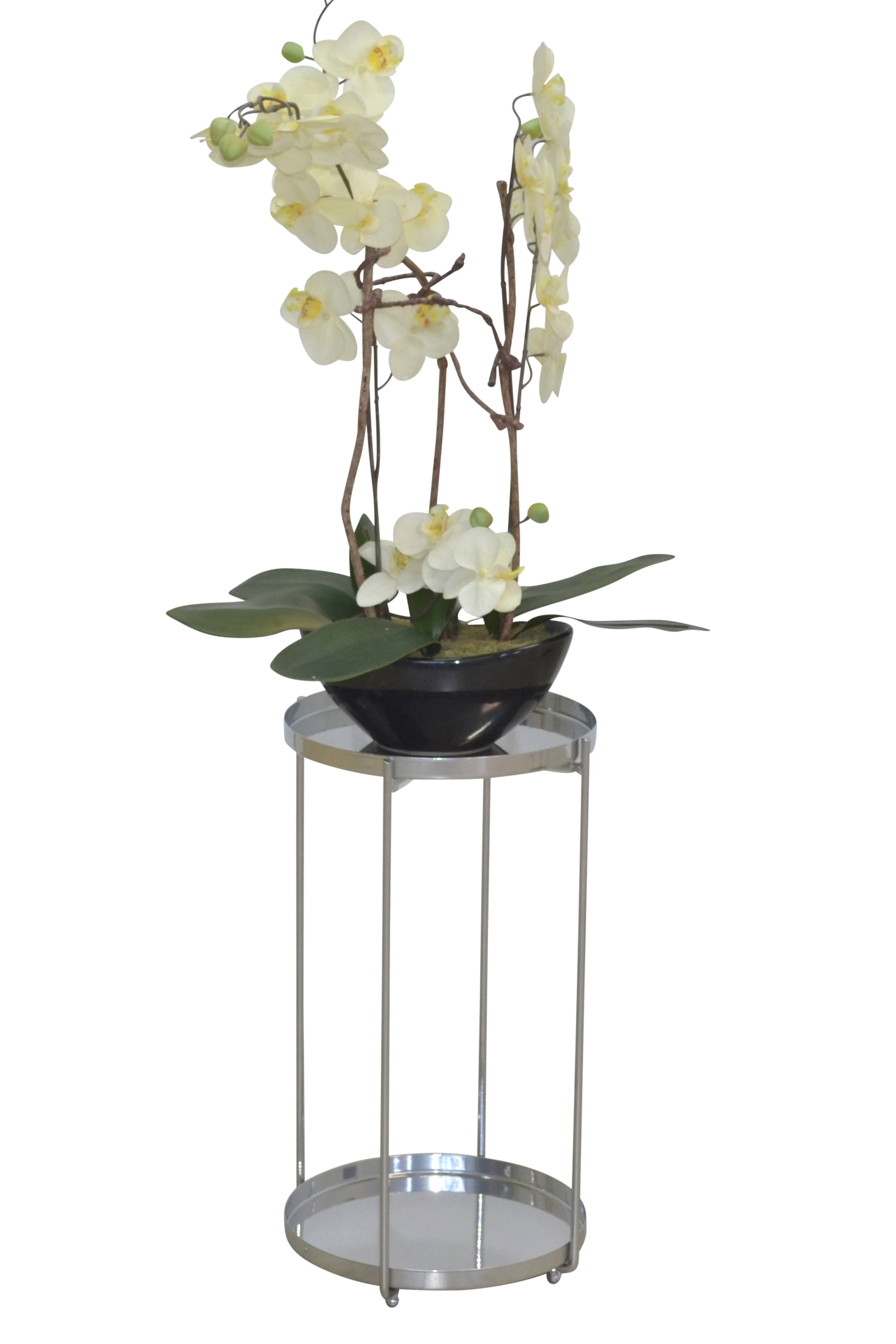 Porte-Plantes Rond en Métal argenté Hauteur 46 cm Finition Lisse Surface Ø25 cm avec Rebord DEC050079