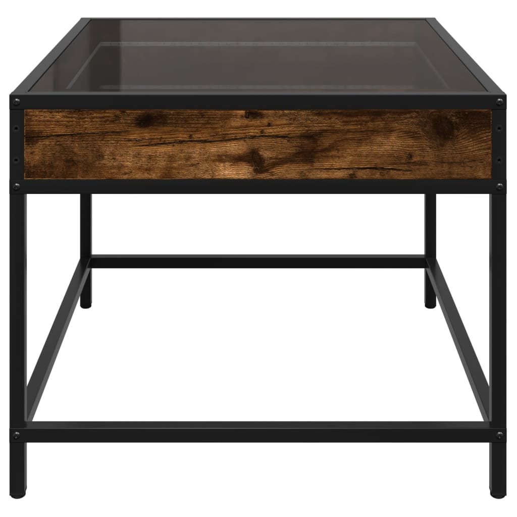 Table basse de salon design moderne avec LED 50 x 50 x 41 cm bois d'ingénierie marron verre et métal DEC037546