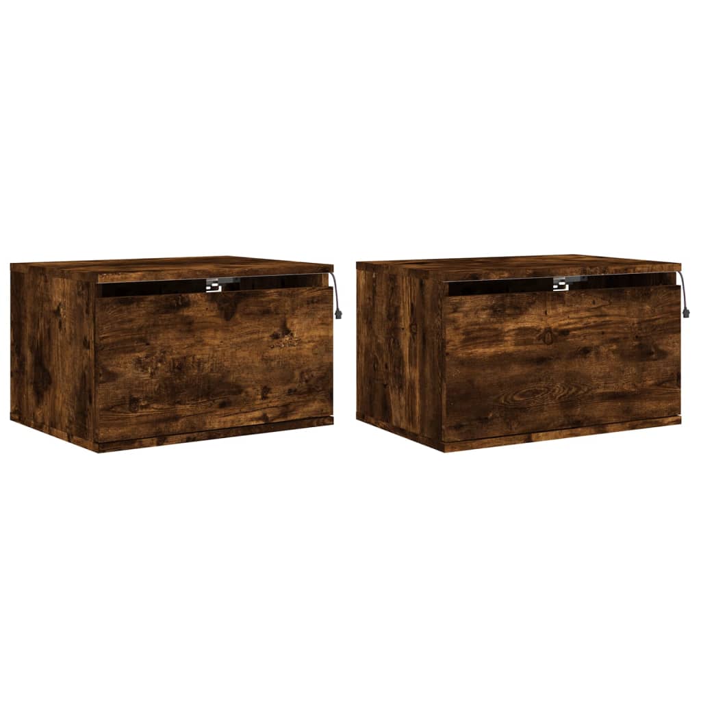 Lot de 2 tables de chevet murales avec lumières LED 50 x 36 x 30 cm en bois d'ingénierie marron DEC036131