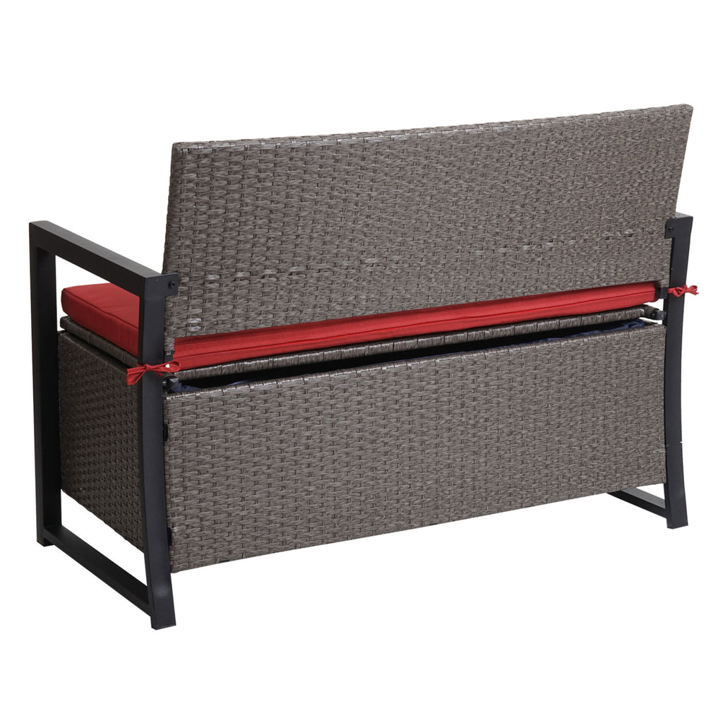 Banc 2 places en polyrotin hwc-f39 banc de jardin coffre banc compartiment de rangement coussin de siège de rangement coussin gris chiné rouge 04_0005796