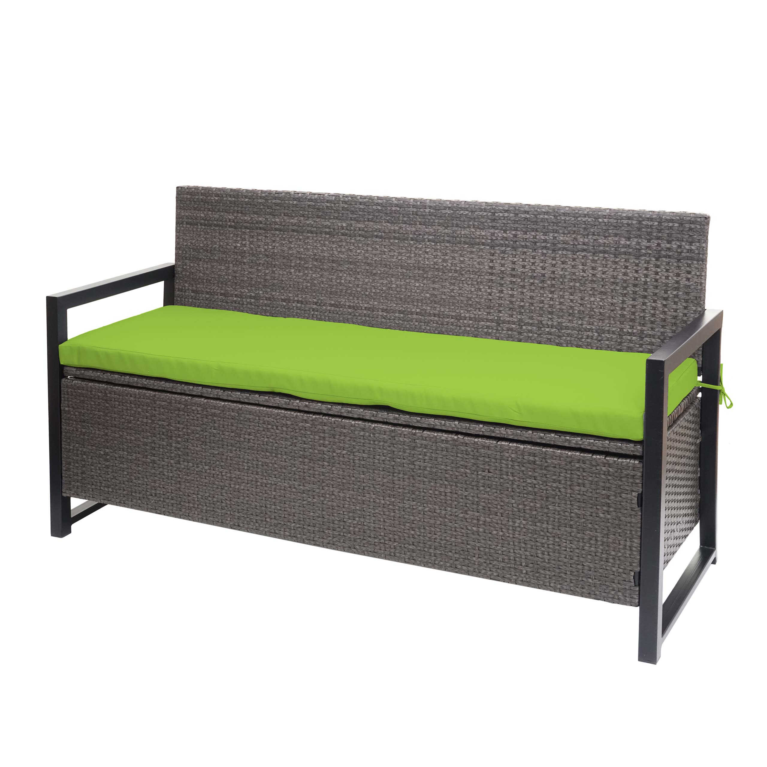 Banc banquette avec compartiment de rangement 3 places en polyrotin gris chiné coussin vert 04_0005801