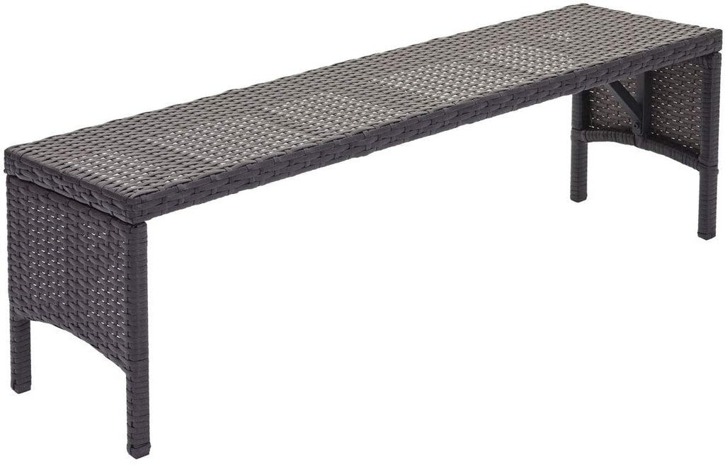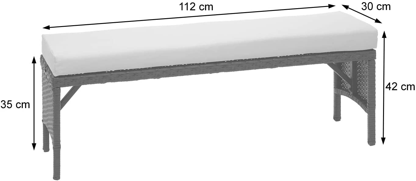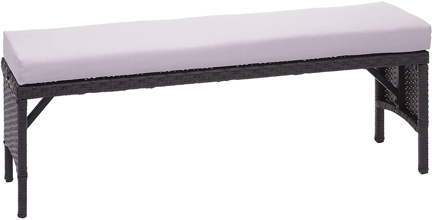 Banc de jardin banquette en polyrotin noir et coussin gris clair 112 cm MDJ04167