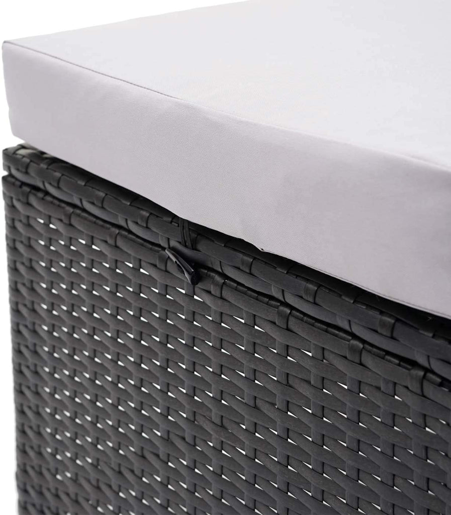 Banc de jardin banquette en polyrotin noir et coussin gris clair
