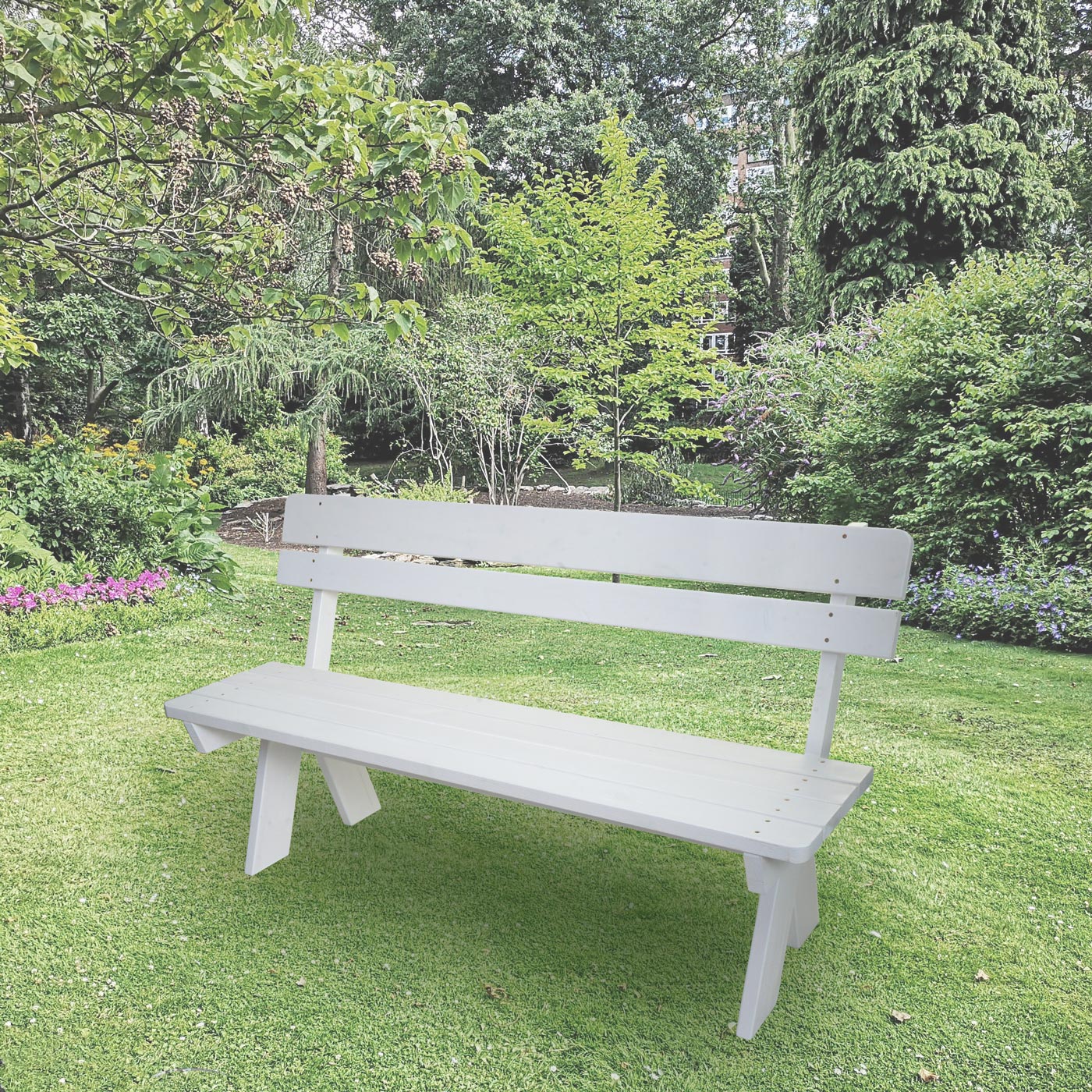 Banc de jardin hwc-l66 banc en bois banc de parc qualité gastronomique bois massif 148 cm blanc 04_0005834