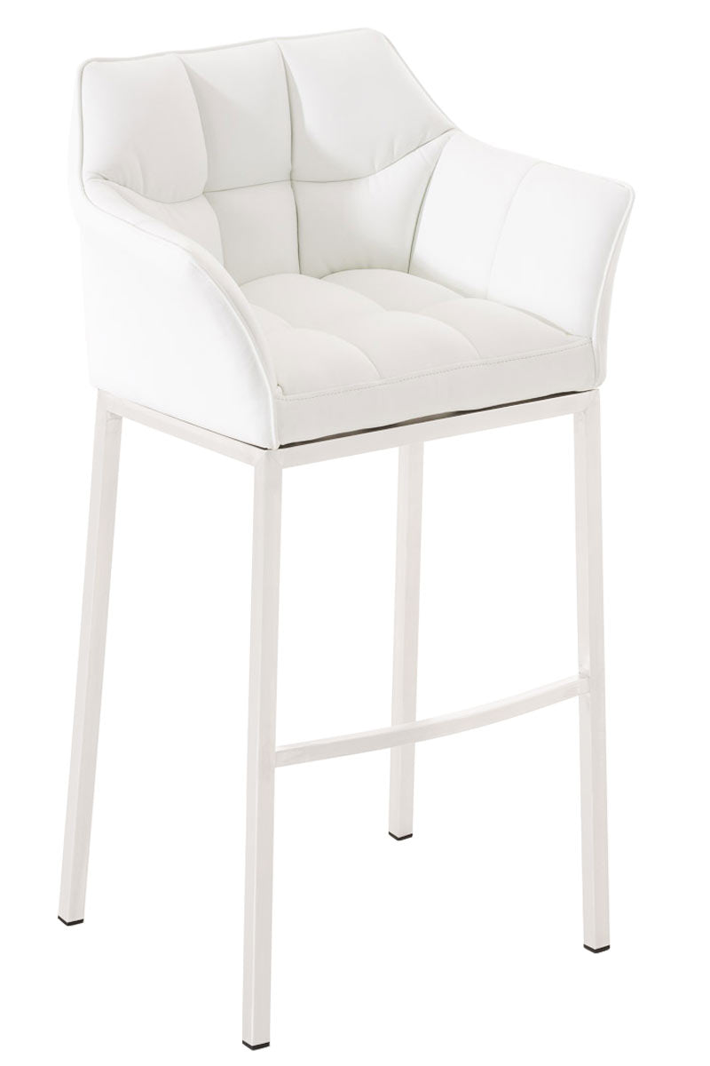 Tabouret de bar chaise haute de comptoir couture carrées assise en PVC blanc 4 pieds stables en métal blanc 10_0001061