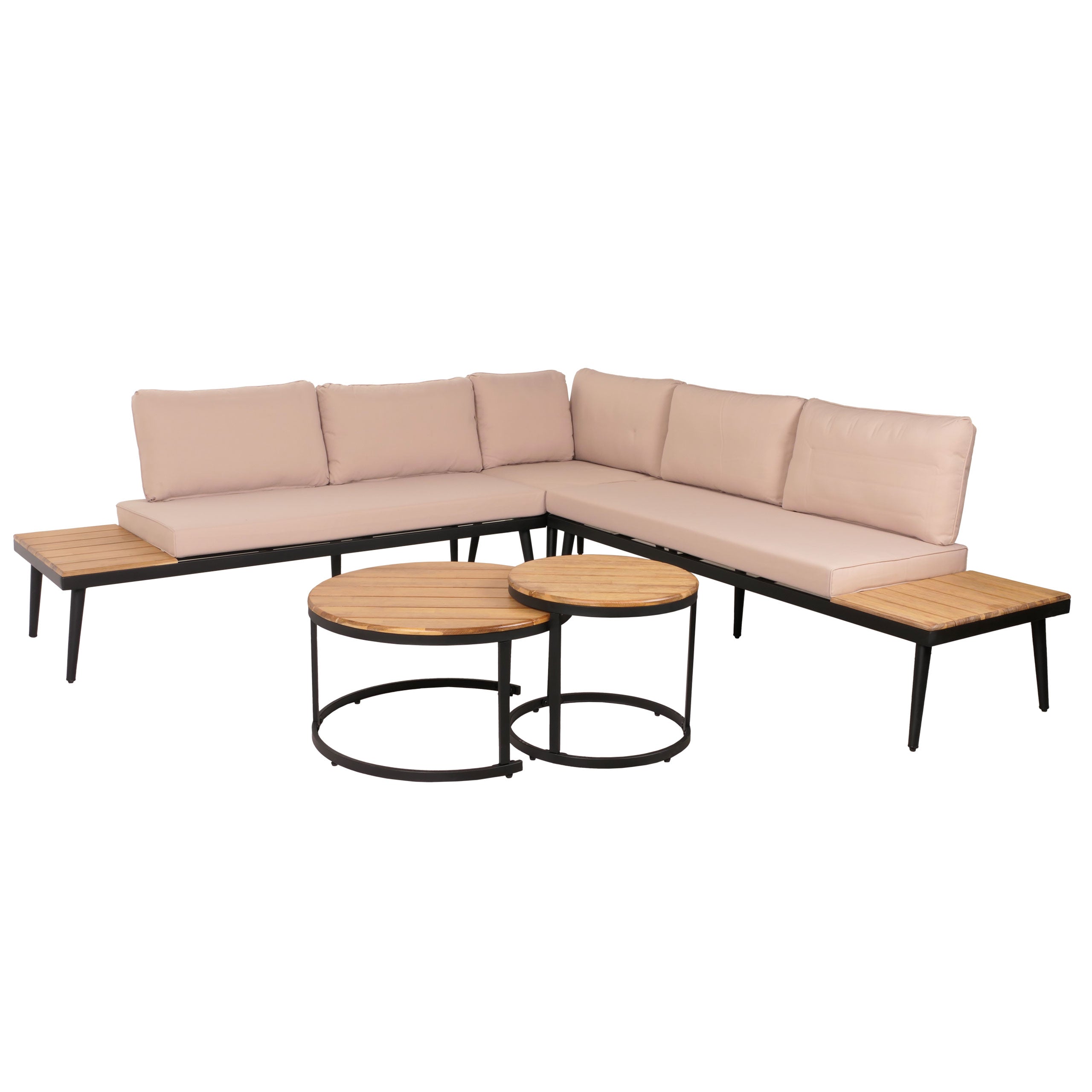 Salon de jardin avec deux tables d'appoint en bois d'acacia marron clair et coussin beige 04_0008304
