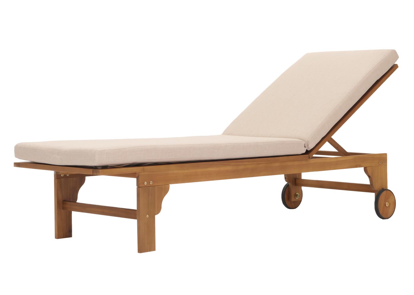 Transat de jardin chaise longue en bois et osier décoratif en polyrotin coussin crème-beige 04_0008607