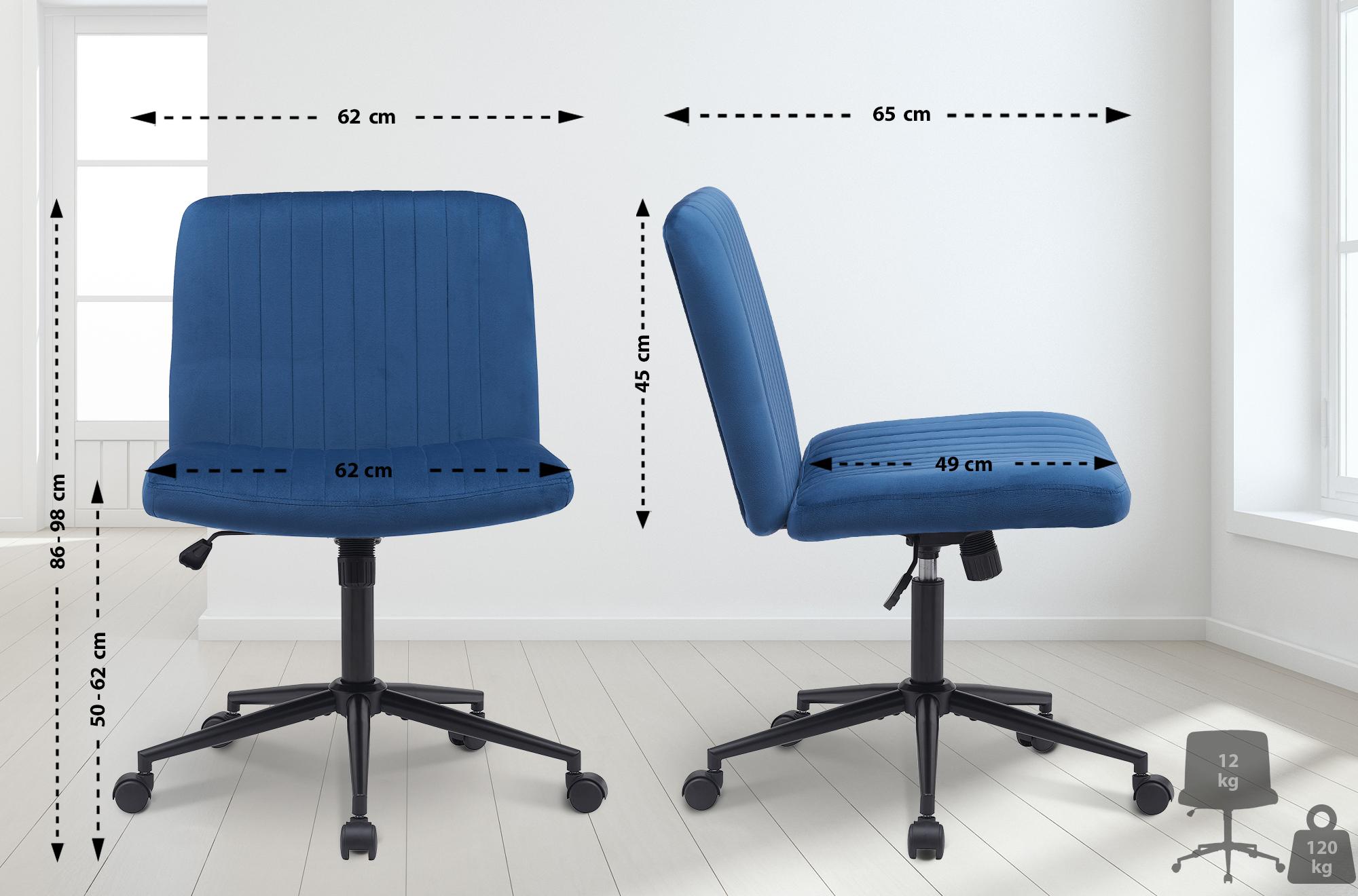 Chaise de bureau contemporaine surpiqûres verticale en velours bleu réglable en hauteur et rotatif à 360 degrés 10_0007031