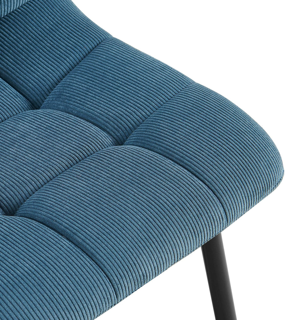 Chaise de salle à manger x1 avec coutures décoratives carrées en velours côtelé bleu cadre métal 10_0007472
