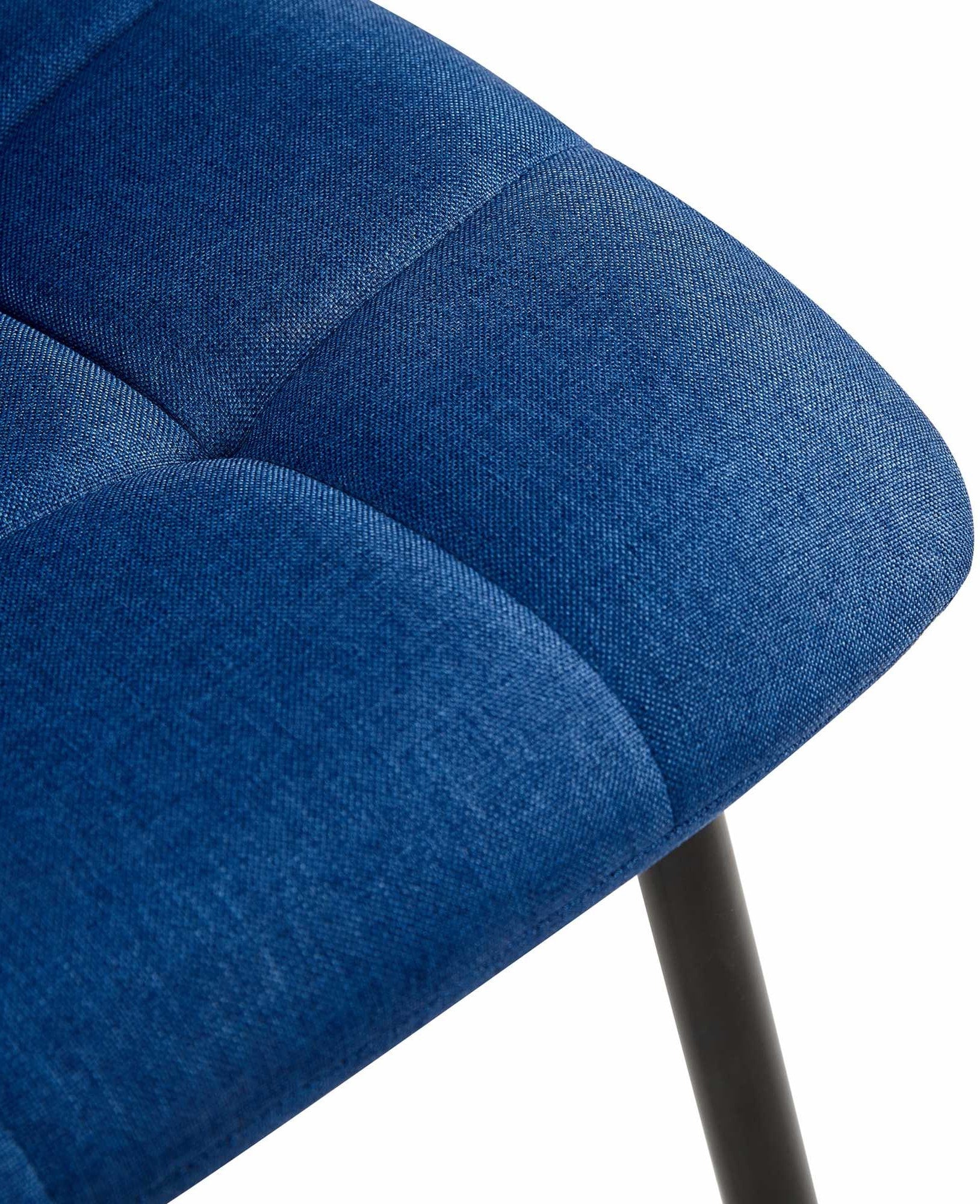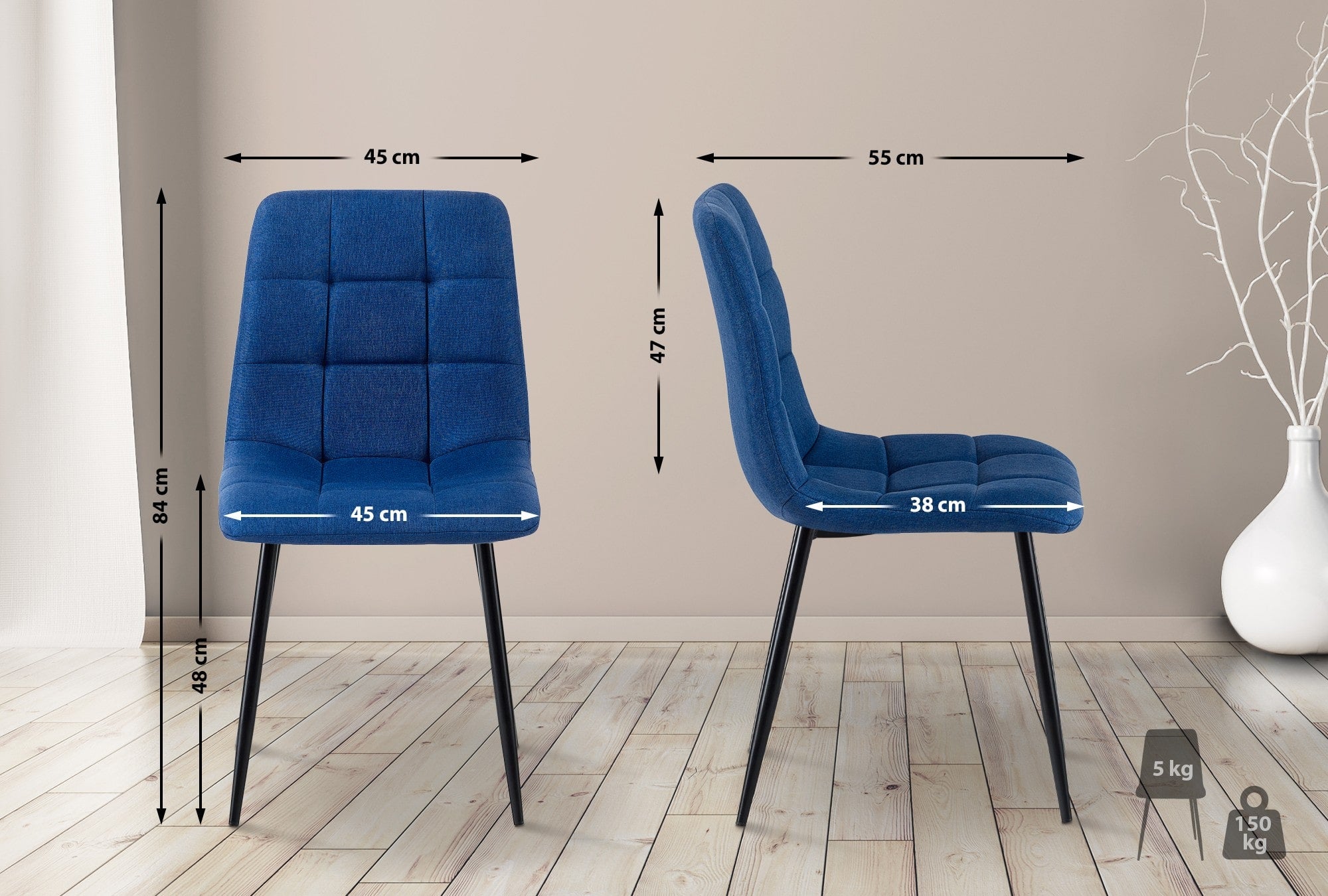Chaise de salle à manger x1 coutures forme carrées en tissu bleu pieds en métal noir 10_0001974