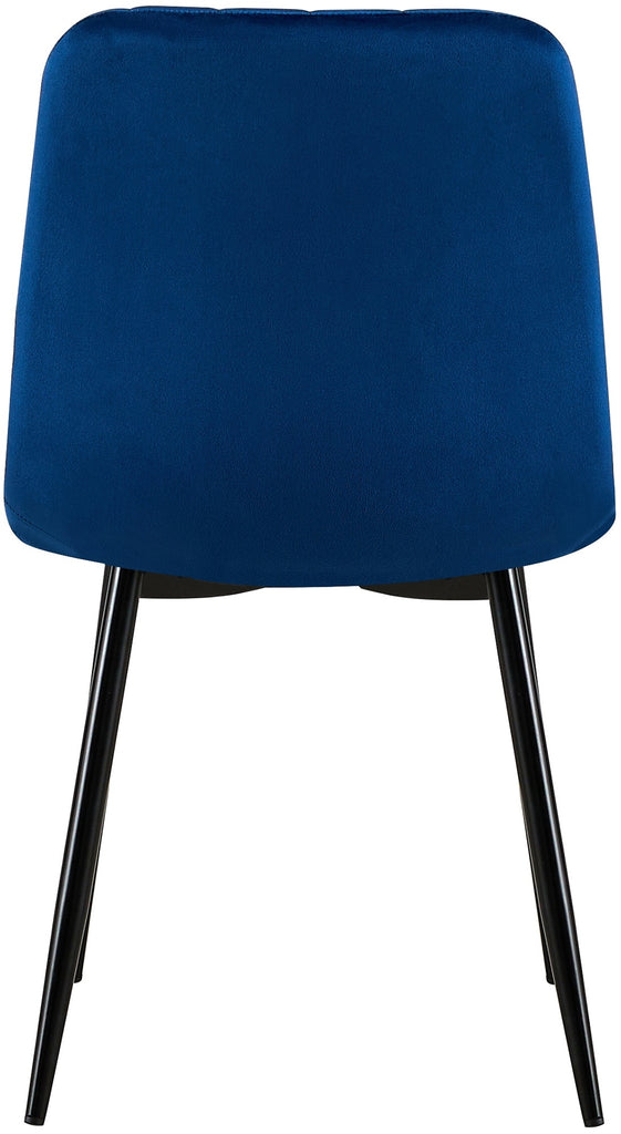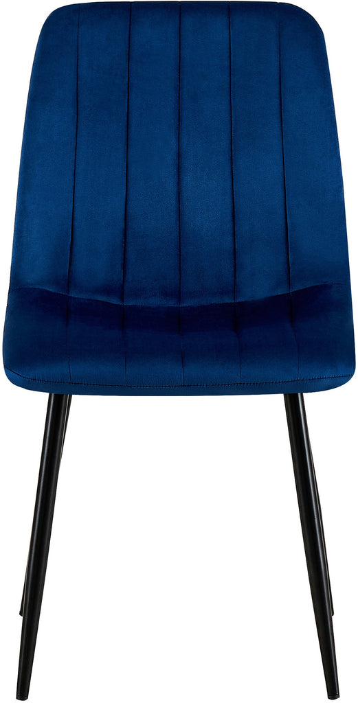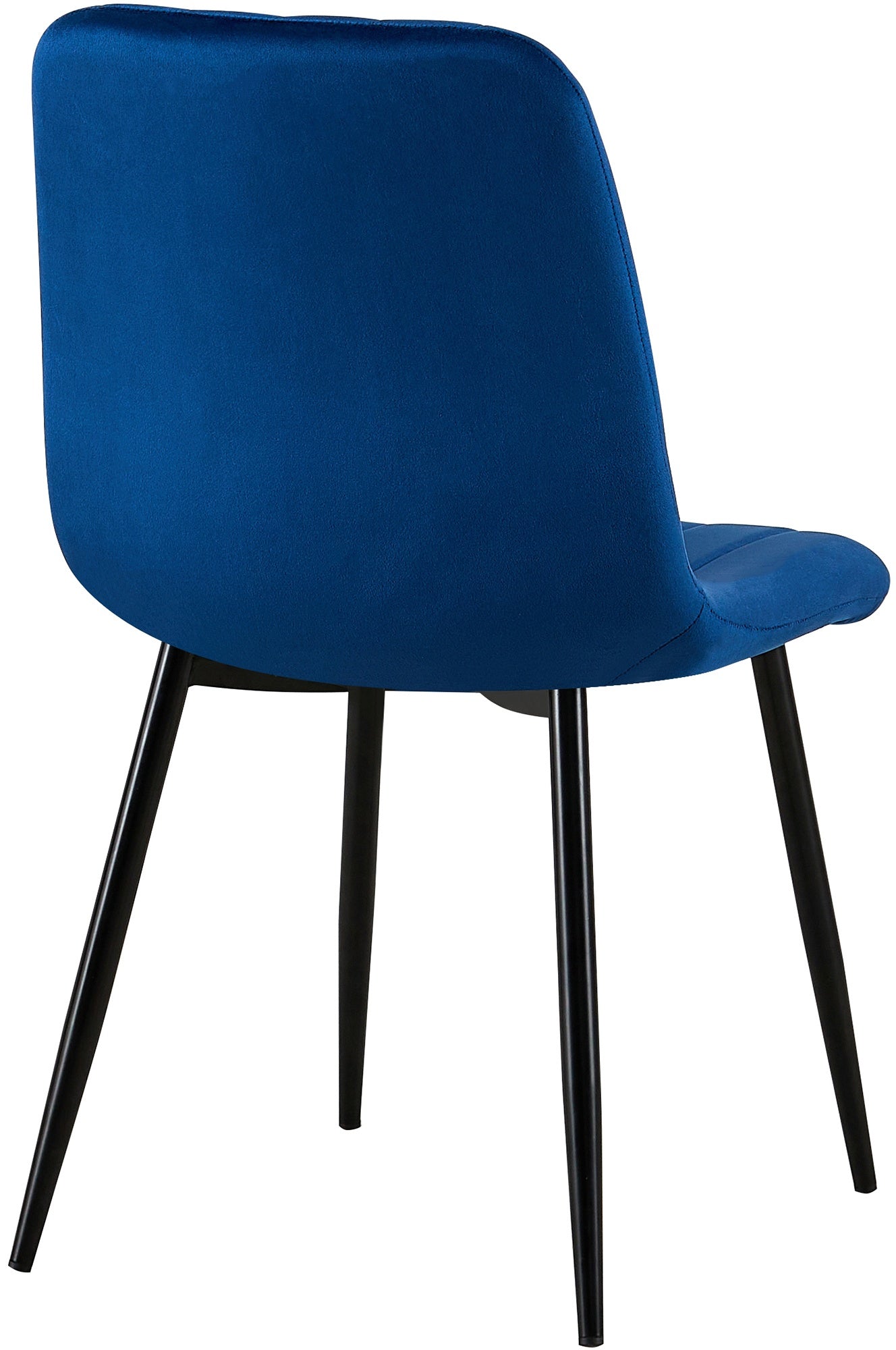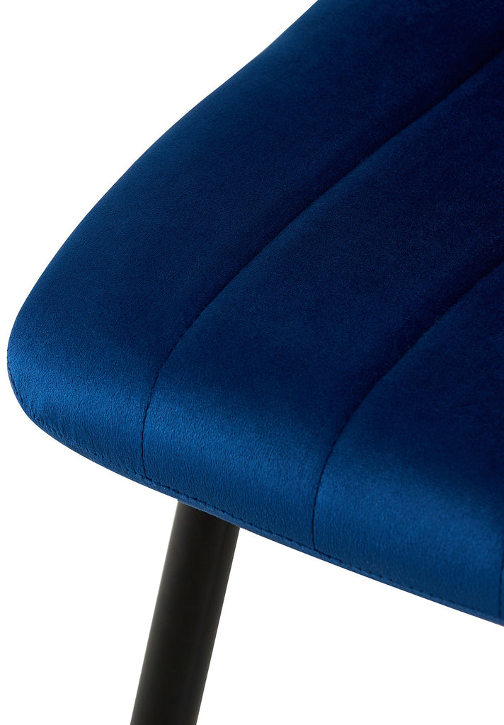 Chaise de salle à manger x1 coutures décoratives verticales assise en tissu velours bleu pieds en métal noir 10_0002198