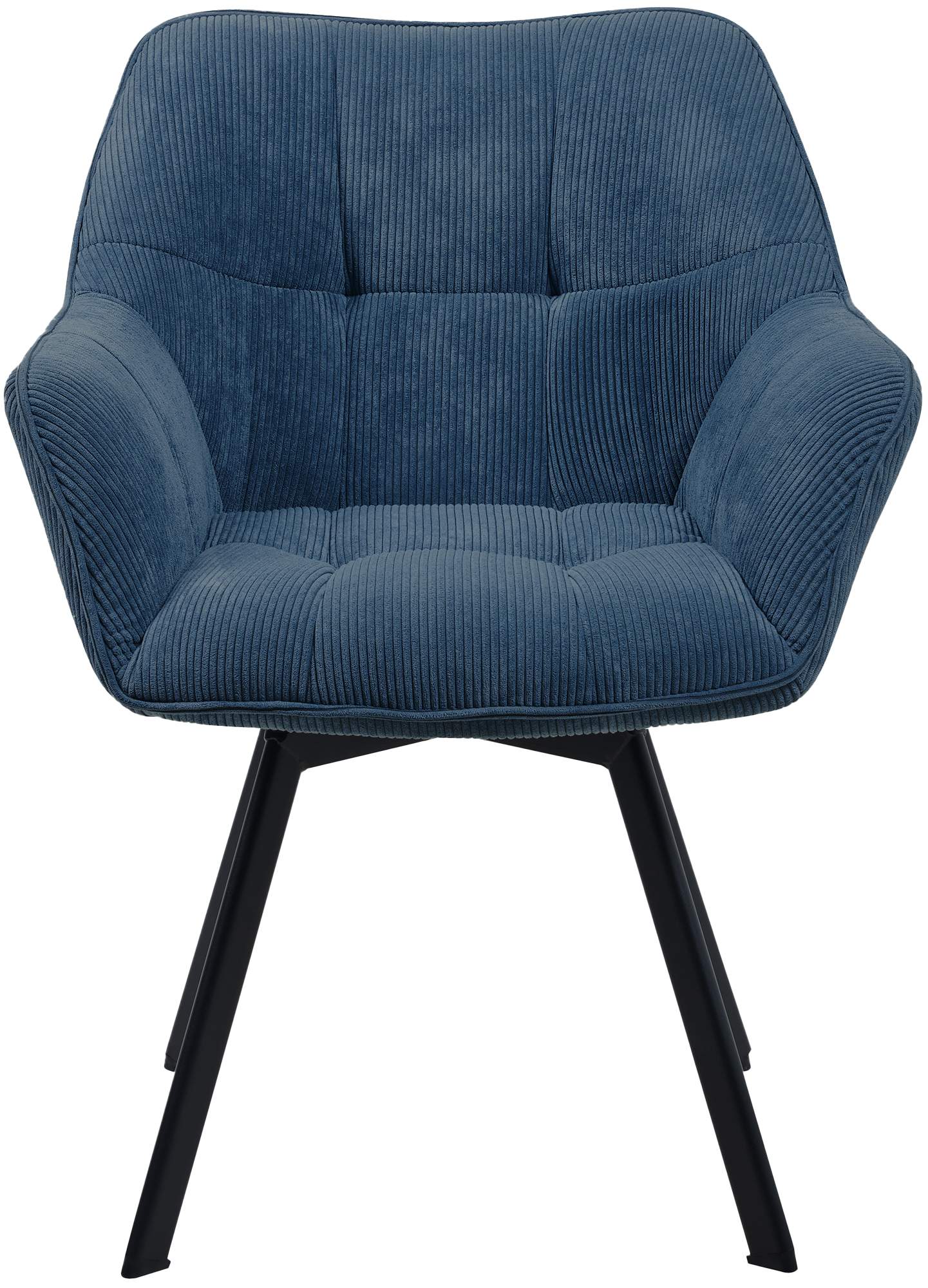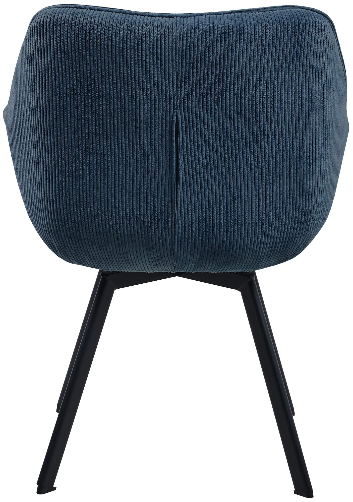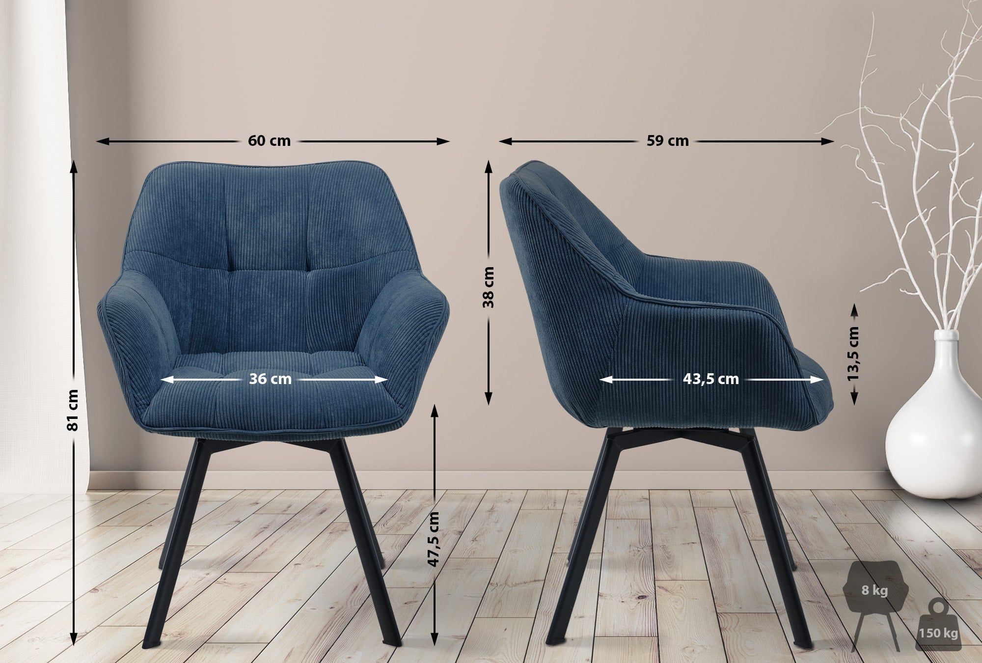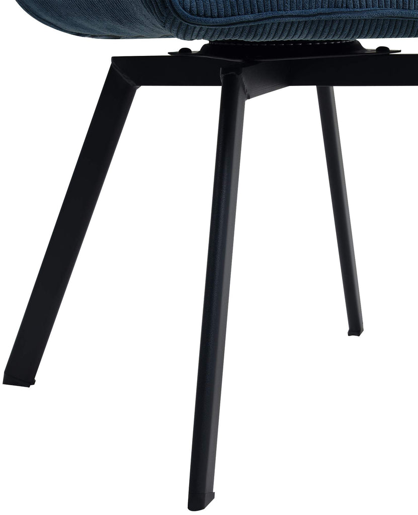 Chaise de salle à manger assise pivotante confortable en velours côtelé bleu et métal noir 10_0002036