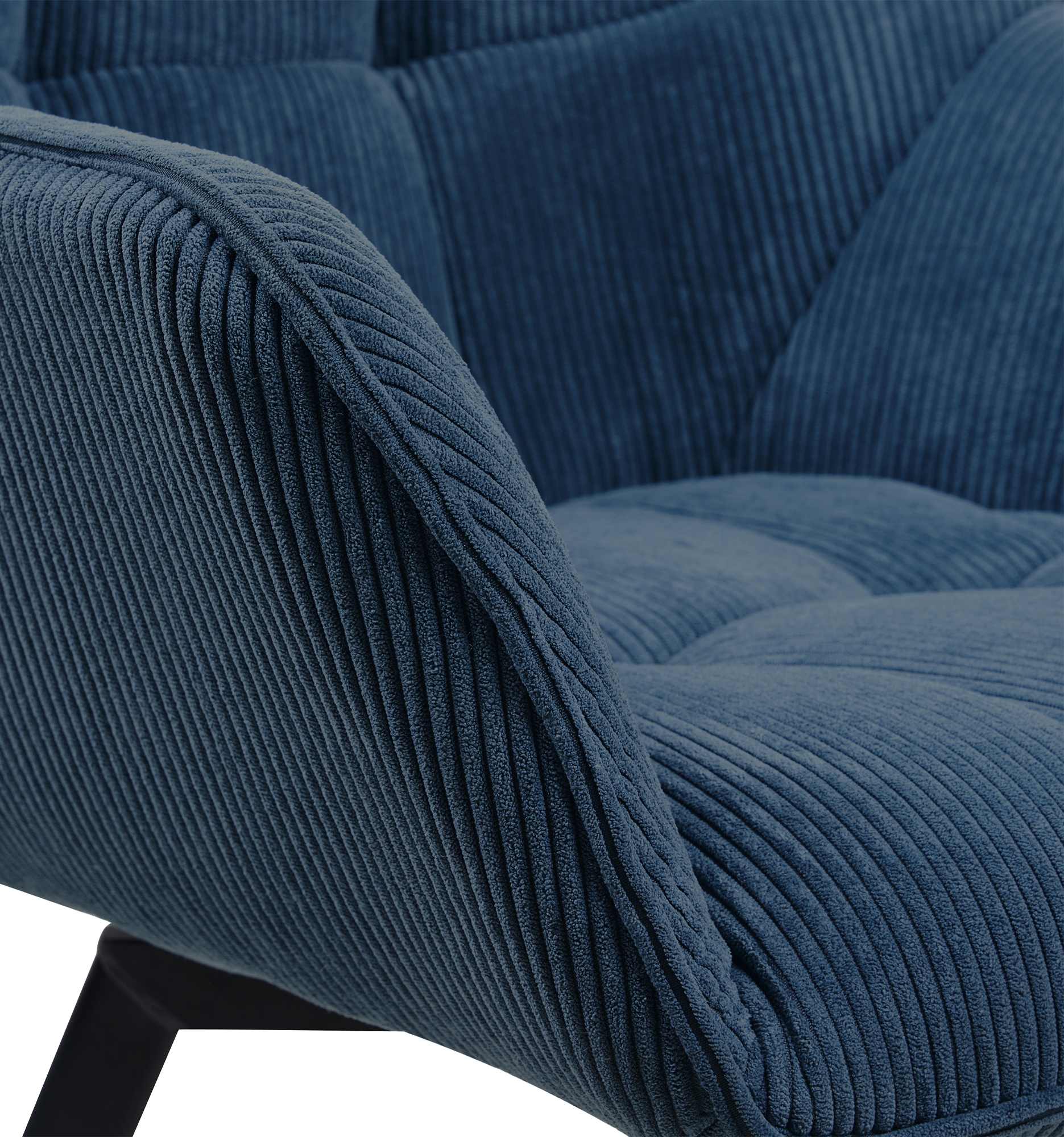 Le rembourrage agréable de l'assise, du dossier et des accoudoirs est déterminant pour une assise confortable. La coque d'assise est recouverte d'un tissu en velours côtelé robuste et facile à entretenir.