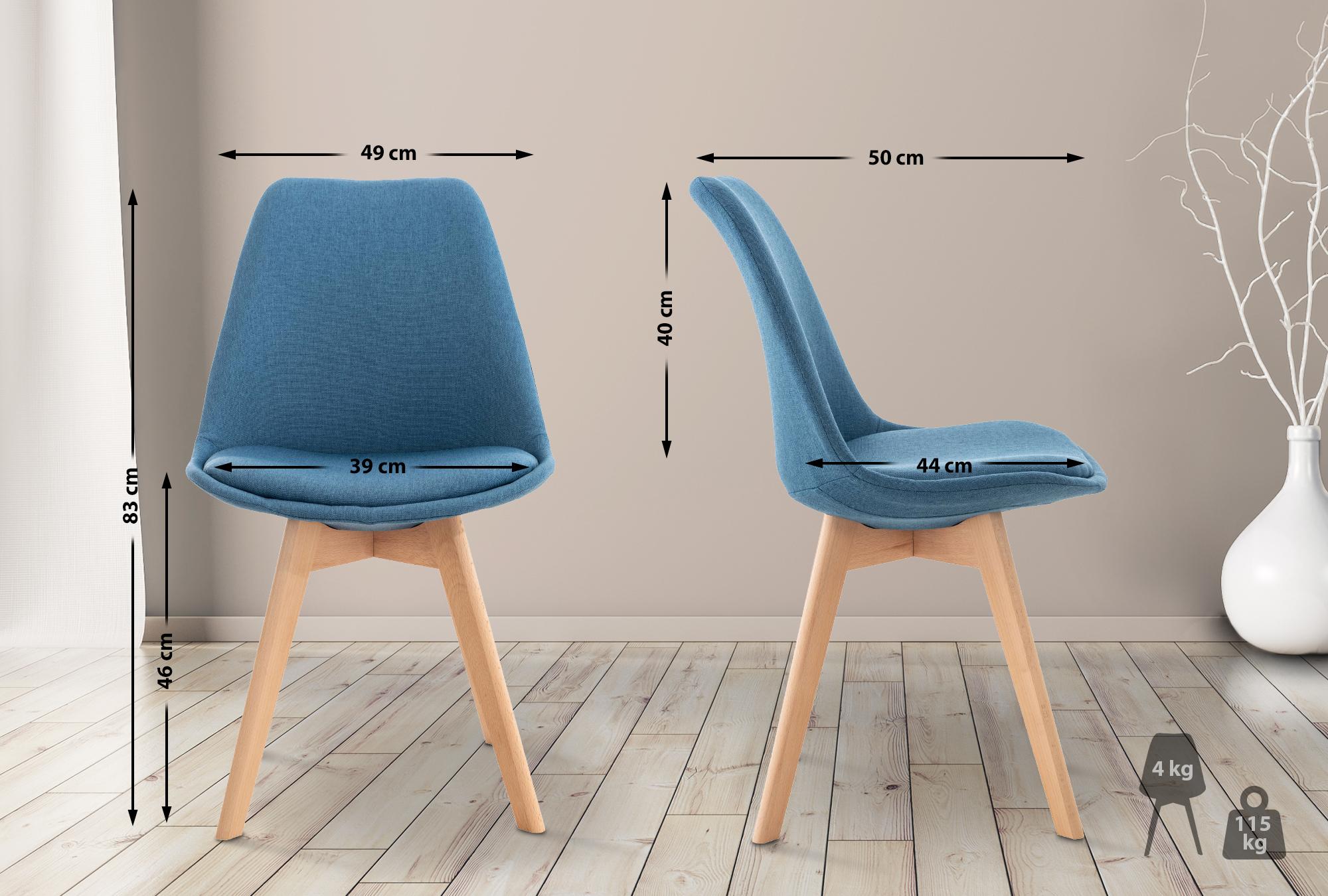 Chaise de salle à manger x1 design scandinave en issu bleu et pieds en bois clair 10_0002291
