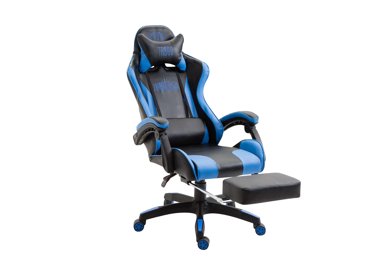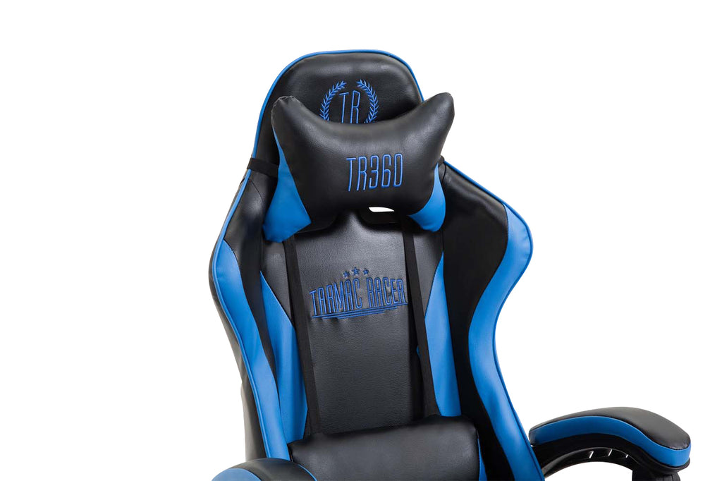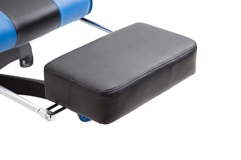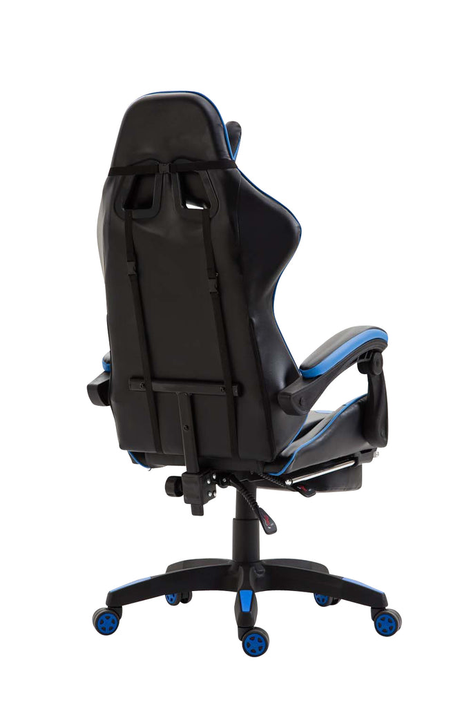 Fauteuil de bureau repose-pieds télescopique design sportif gamer en PVC noir / bleu et plastique 10_0002507