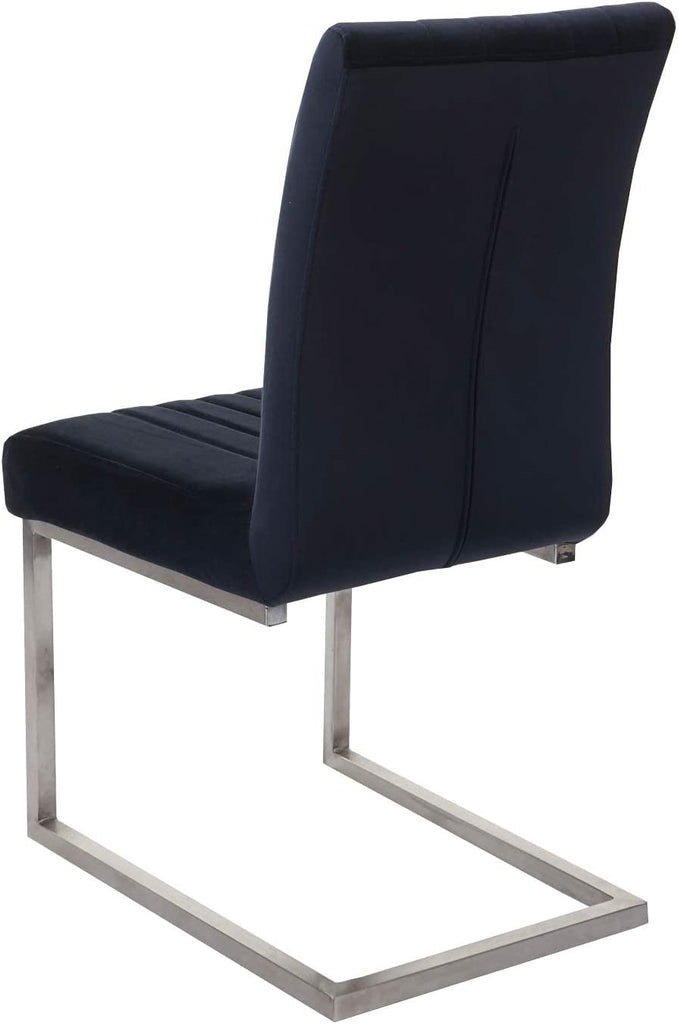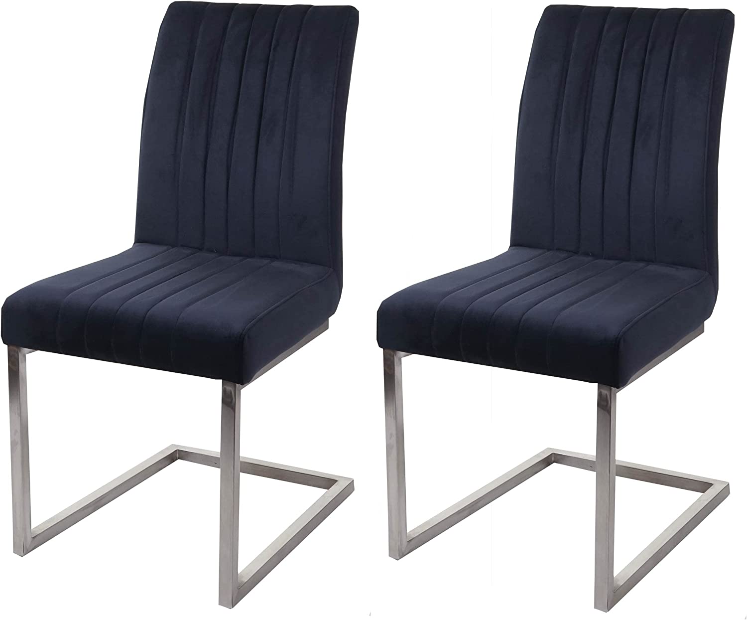 Lot de 2 chaises de salle à manger chaise de conférence en acier inoxydable brossé velours anthracite-bleu
