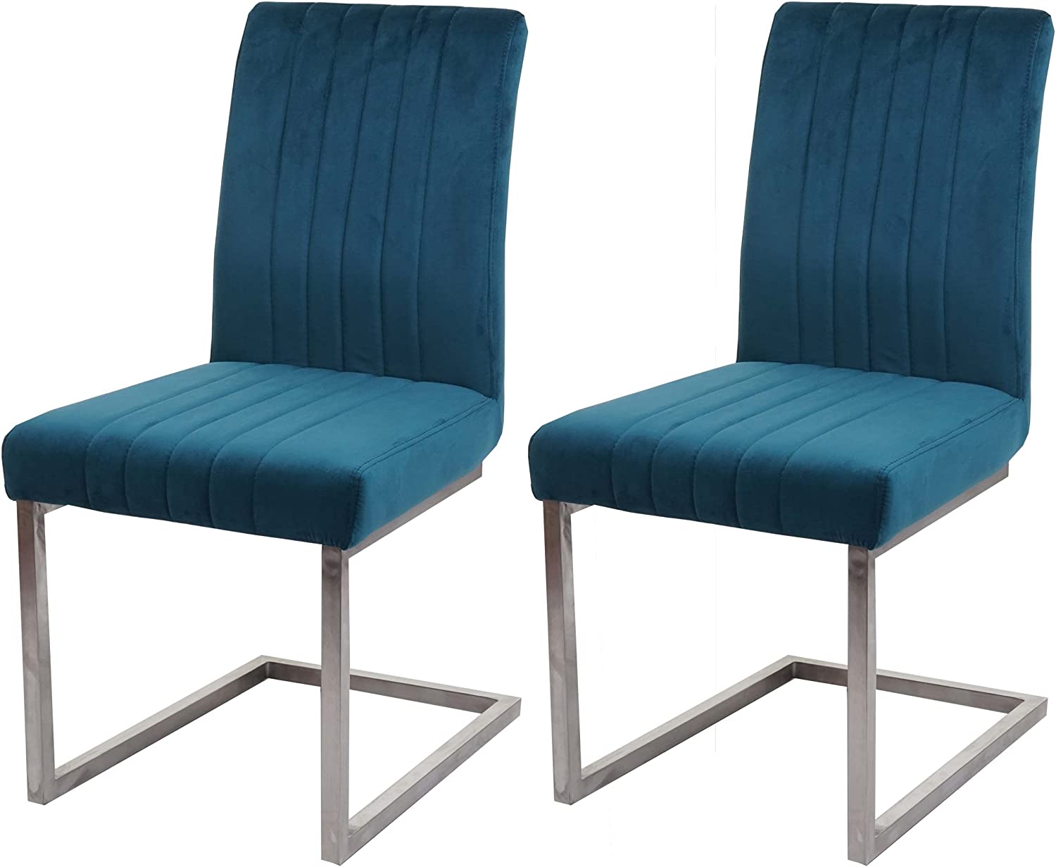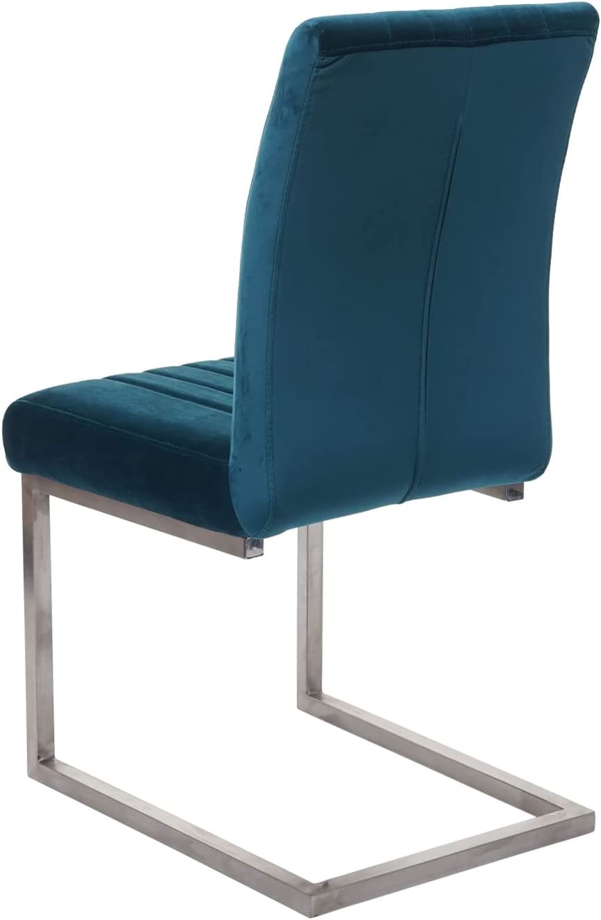 Lot de 2 chaises de salle à manger chaise de conférence en acier inoxydable brossé velours bleu turquoise