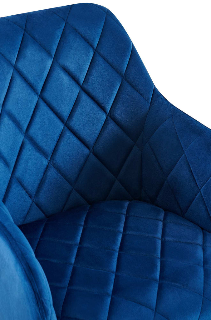 Lot de 2 chaises de salle à manger en velours bleu avec coutures décoratives en losange pieds noir chic et contemporain 10_0007779