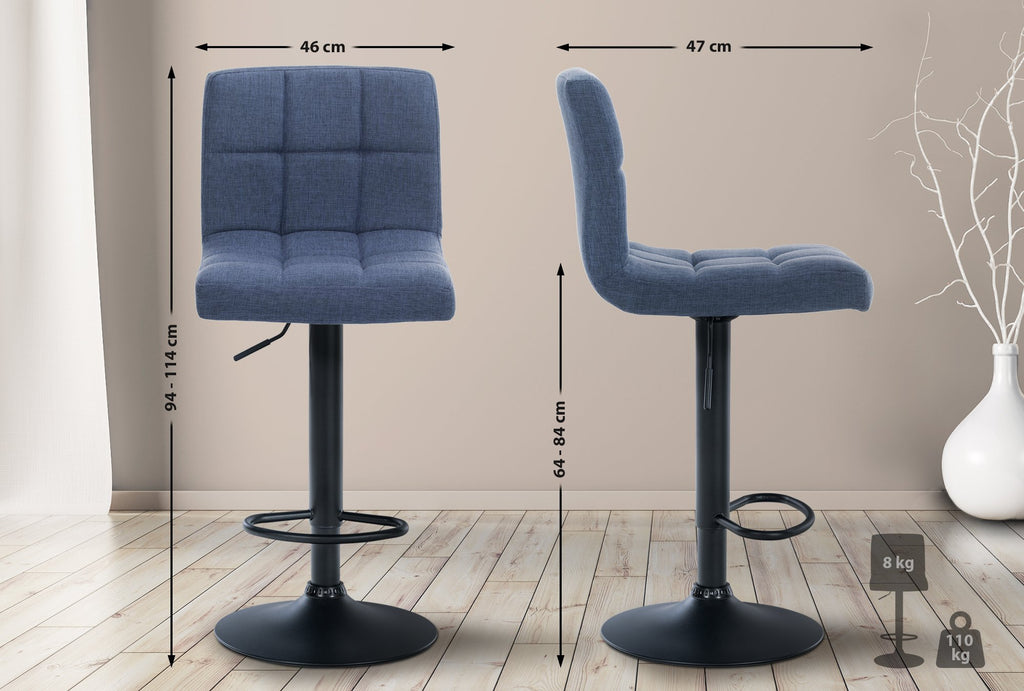 Lot de 2 tabourets de bar style contemporain en tissu matelassé bleu cadre métal noir 10_0006174