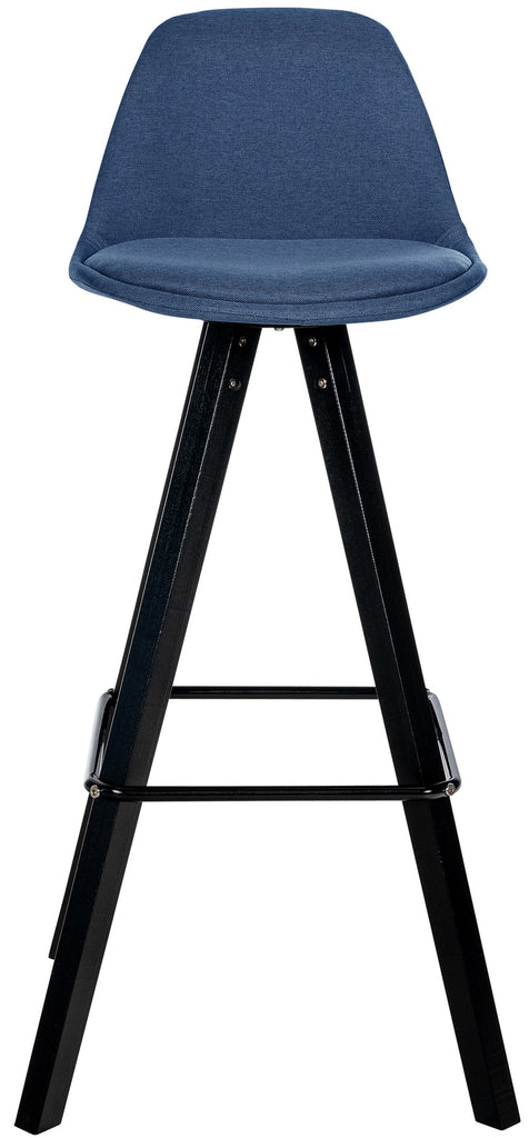 Lot de 2 tabourets de bar chaise haute repose-pieds style scandinave en tissu bleu structure en bois foncé carré 10_0006370