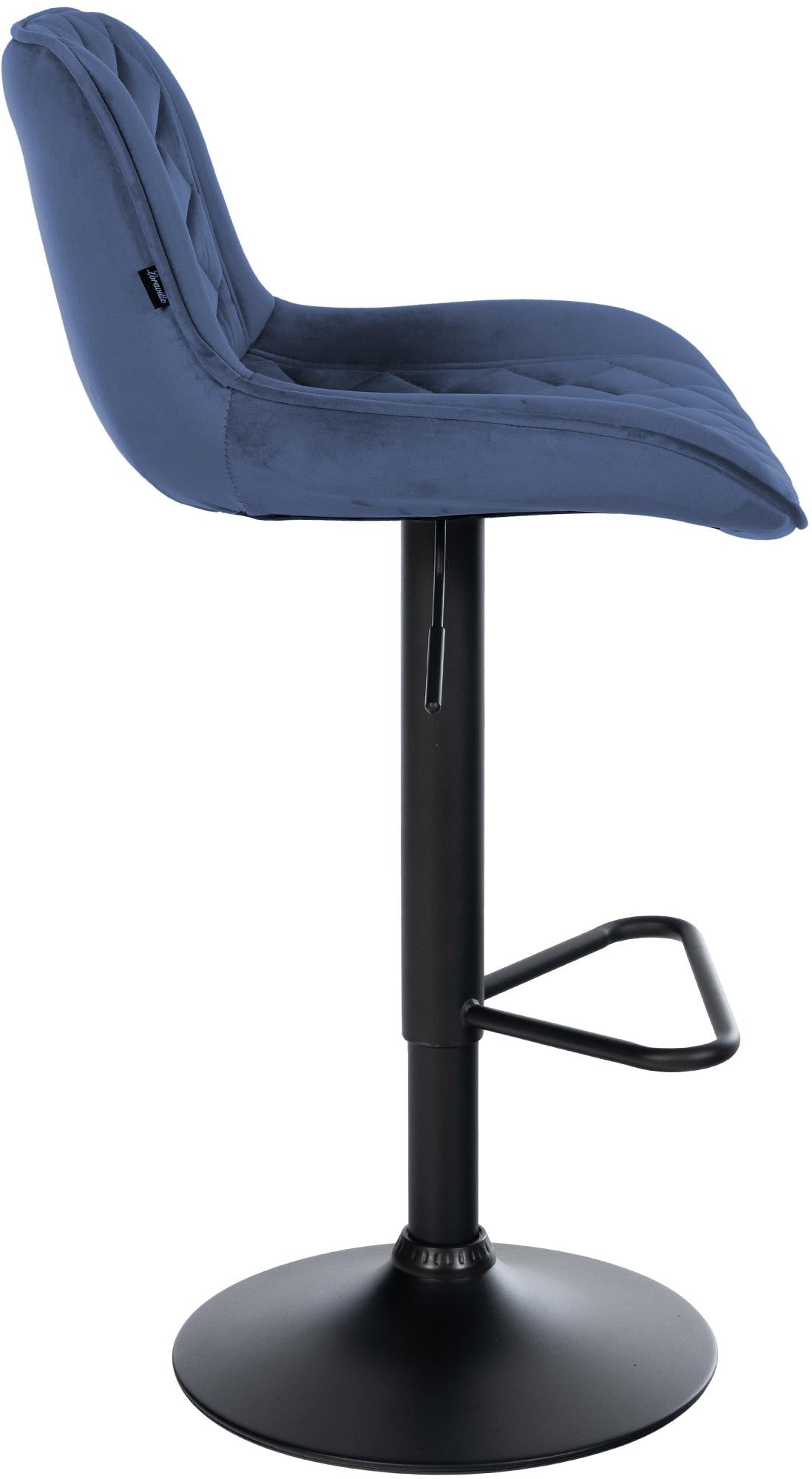 Lot de 2 tabourets de bar repose-pieds hauteur réglable en velours bleu coutures losange cadre métal noir 10_0006066