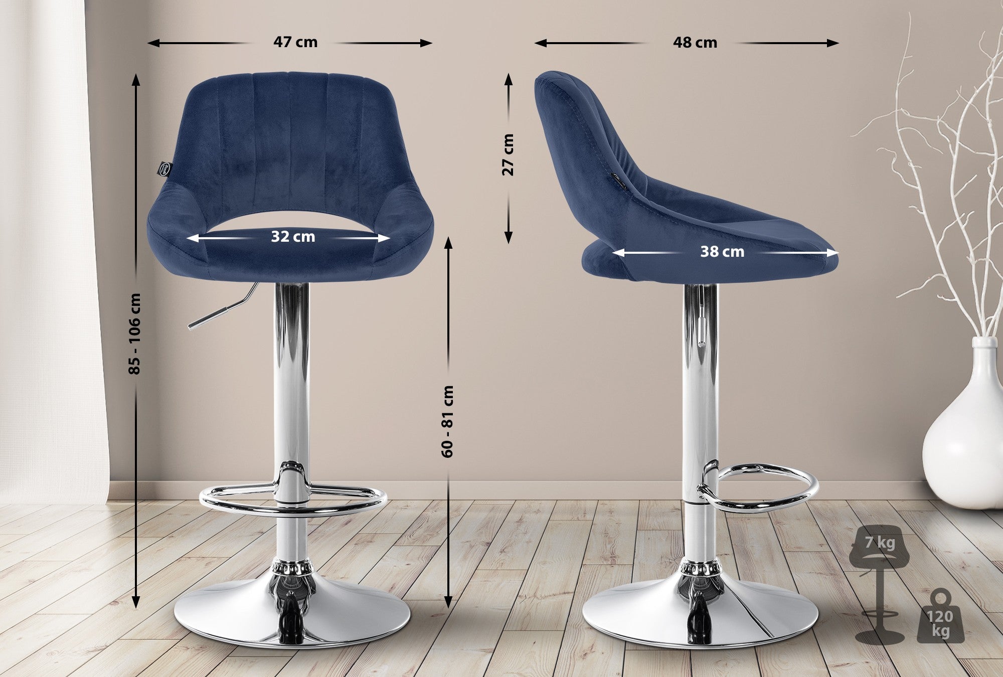 Le tabouret de bar se distingue par sa structure métallique robuste qui assure sa stabilité. La hauteur d'assise est réglable de manière flexible pour permettre une adaptation optimale à la hauteur de la table, tandis que la fonction de rotation à 360 degrés permet une utilisation polyvalente. Grâce à son revêtement en tissu velours, la chaise de bar est facile à nettoyer et ne nécessite que très peu d'entretien. Une assise confortable, complétée par un dossier ergonomique et un repose-pieds pratique, favorise une position assise saine. Adapté à une utilisation dans divers environnements tels que les cuisines et les bars, le tabouret s'intègre parfaitement dans différents styles d'aménagement.
