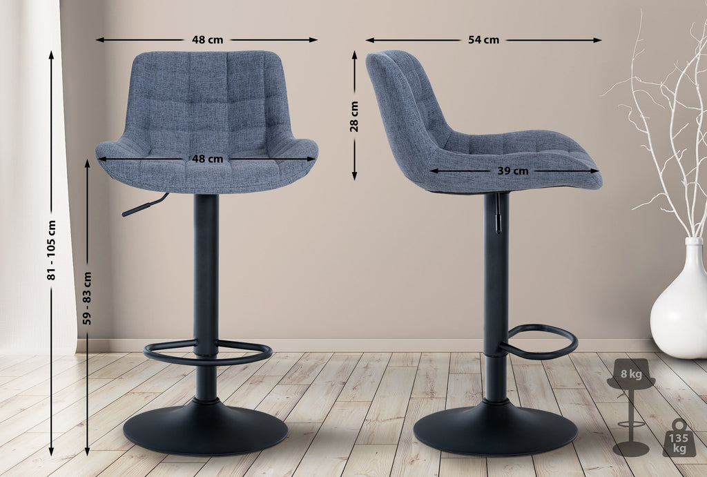 Grâce à leur structure métallique, ces tabourets de bar peuvent pivoter à 360° et sont également réglables en hauteur, ce qui permet de les adapter aux besoins individuels des utilisateurs.