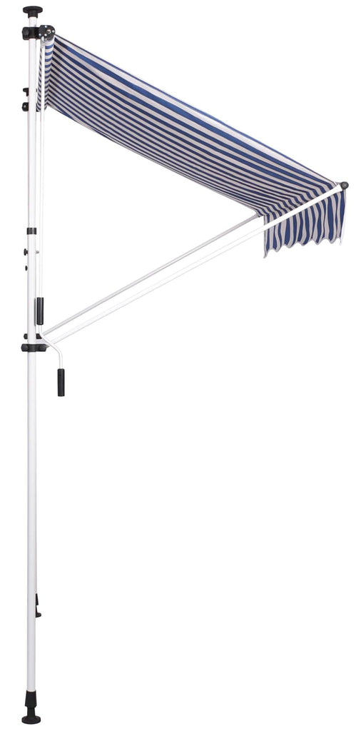 Store banne terrasse auvent à pince avec pied réglable installation sans perçage largeur 350 cm tube en acier tissu blanc / bleu 10_0002973