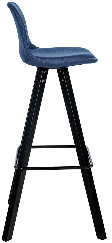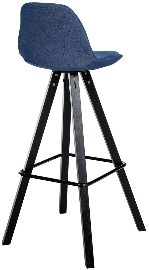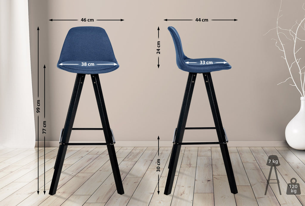Tabouret de bar chaise haute x1 repose-pieds style scandinave en tissu bleu structure en bois noir carré 10_0004644