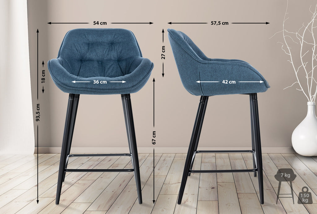 La structure métallique robuste à quatre pieds assure la stabilité de la chaise. Ce tabouret de bar peut supporter une charge allant jusqu'à 150 kg. Grâce aux protections de sol sous les pieds de la chaise, les sols fragiles ne sont pas endommagés.