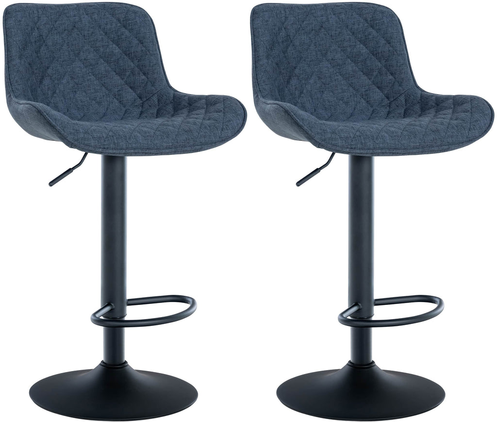 Lot de 2 tabourets de bar réglable et pivotant assise en tissu bleu pieds métal noir TDB10610