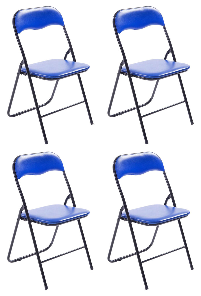 Lot de 4 chaises d'appoint cuisine pliable en métal noir et PVC bleu 10_0006633