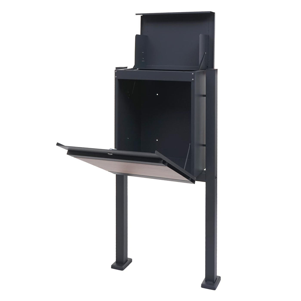 Cette boîte à colis avec support se caractérise particulièrement par son grand compartiment intérieur et convient aux envois de colis, de grandes lettres et de livres. La taille de la boîte aux lettres est également idéale pour un usage professionnel dans votre entreprise.