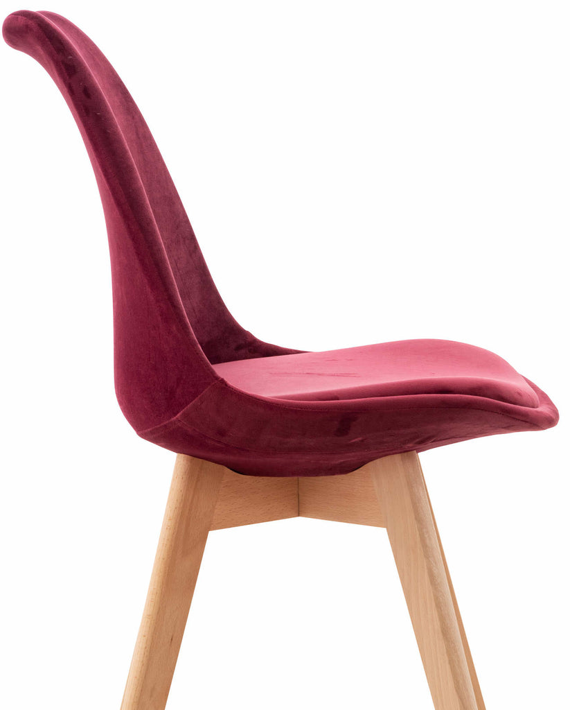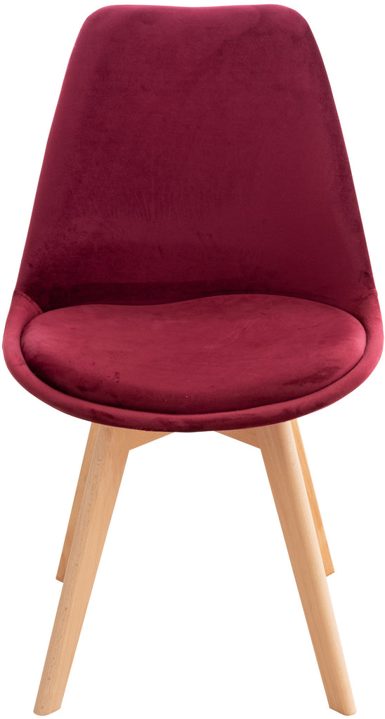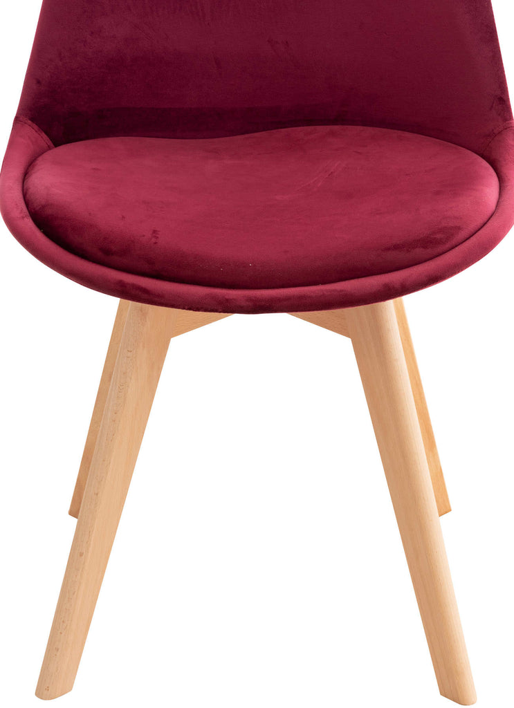 Chaise de salle à manger x1 design scandinave en velours bordeaux et pieds en bois clair 10_0002285