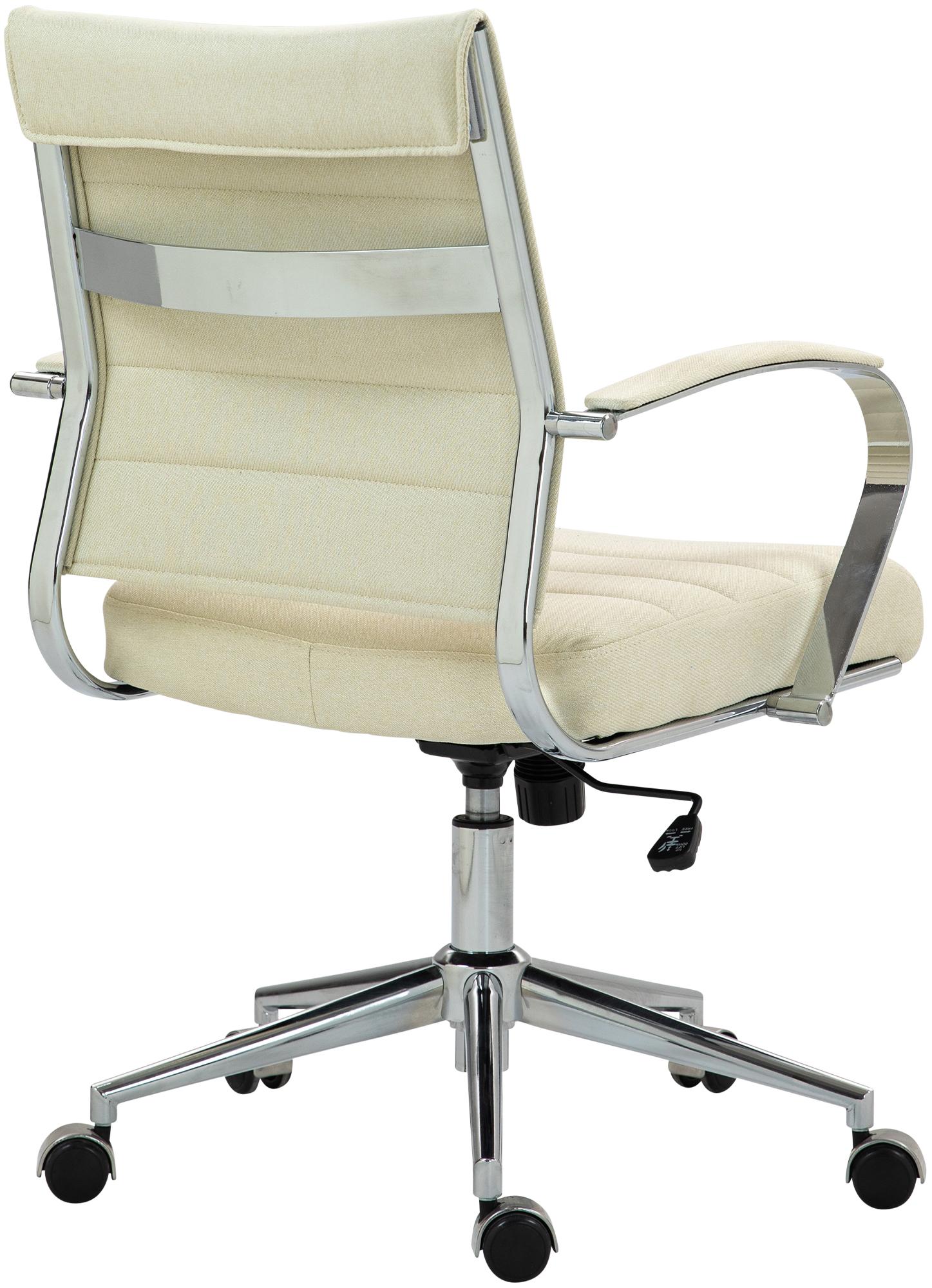 Chaise de bureau sur roulettes design ergonomique en tissu crème et métal chromé 10_0007080