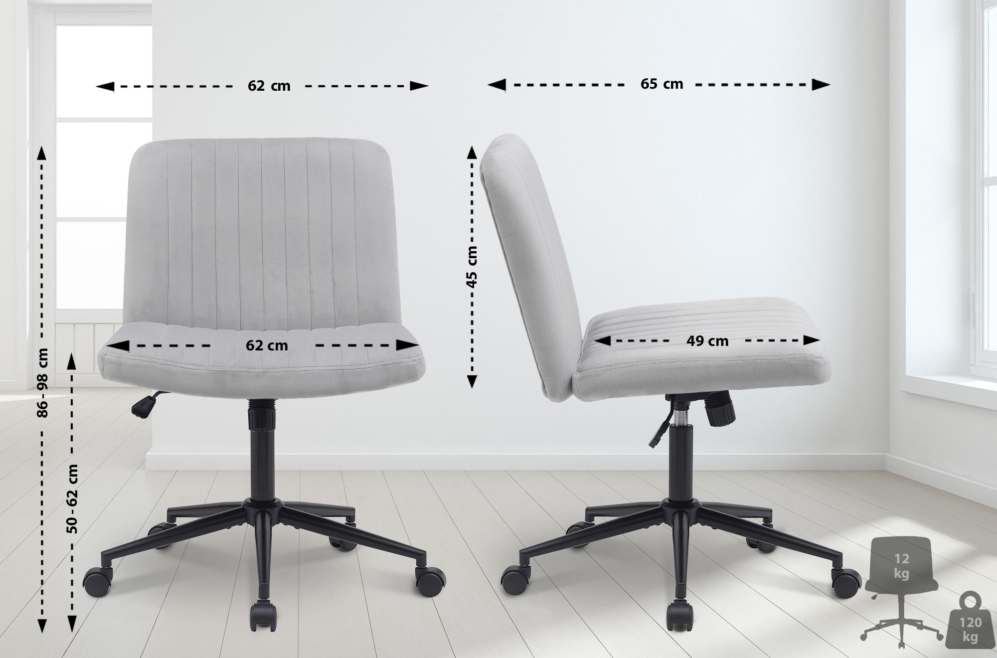 Chaise de bureau contemporaine surpiqûres verticale en velours gris clair réglable en hauteur et rotatif à 360 degrés 10_0006994