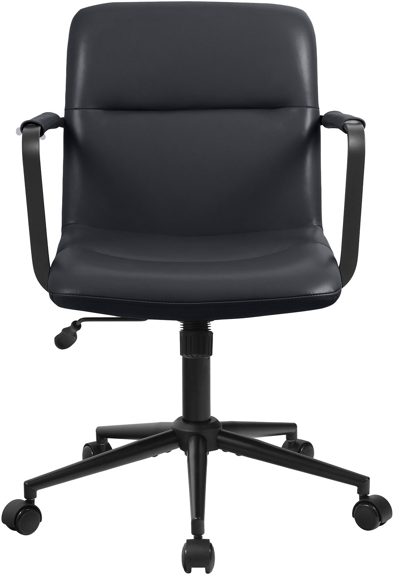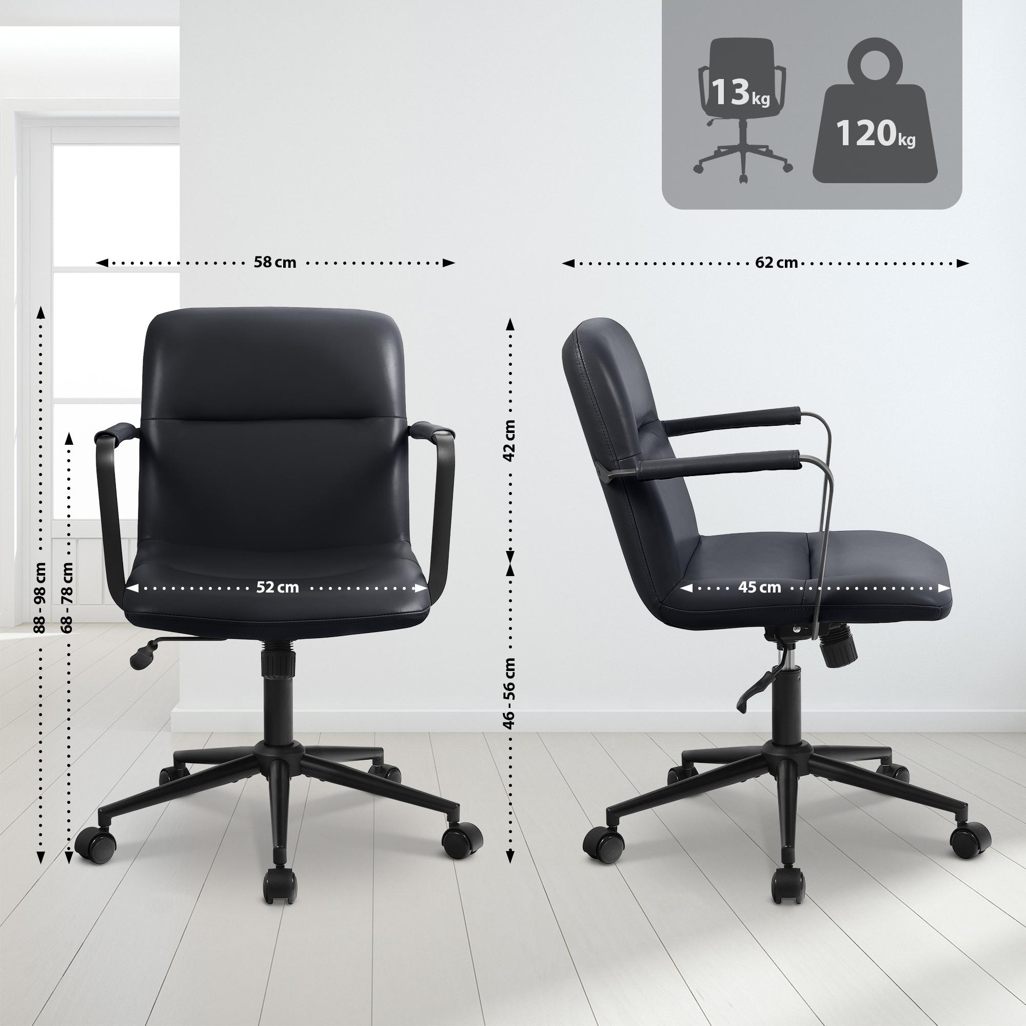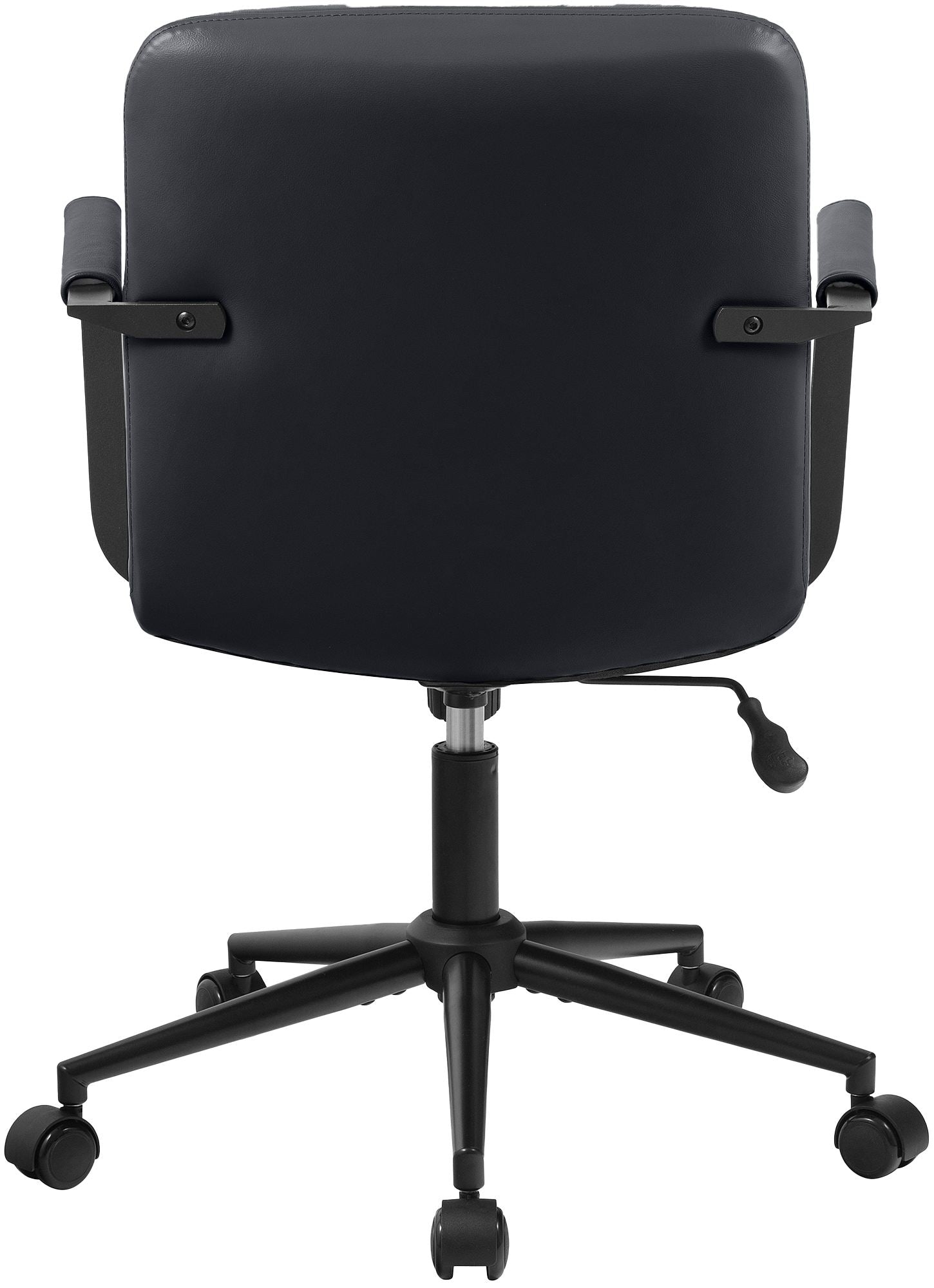 Chaise de bureau sur roulette avec accoudoirs design rétro en cuir véritable noir 10_0007002
