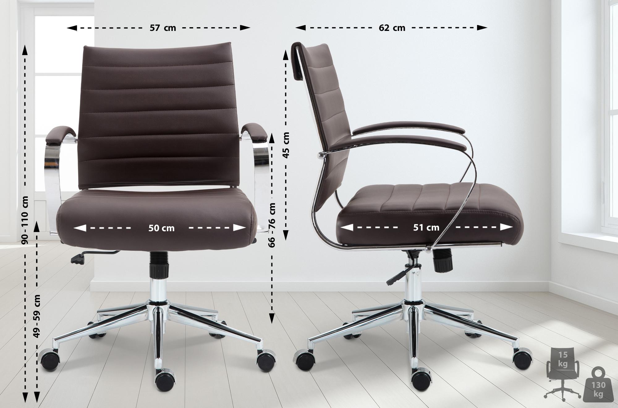 Chaise de bureau sur roulettes design ergonomique en similicuir marron et métal chromé 10_0007022