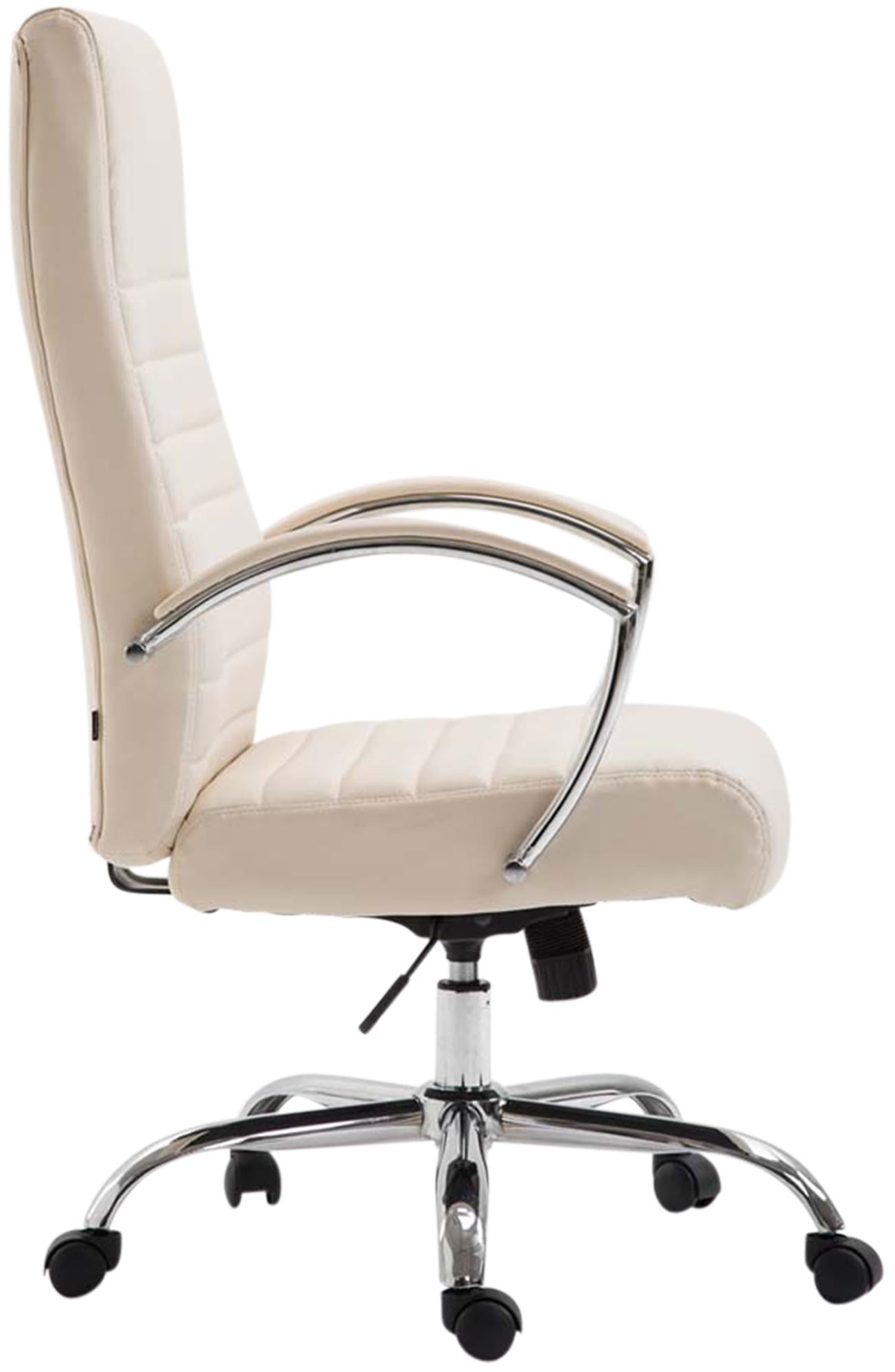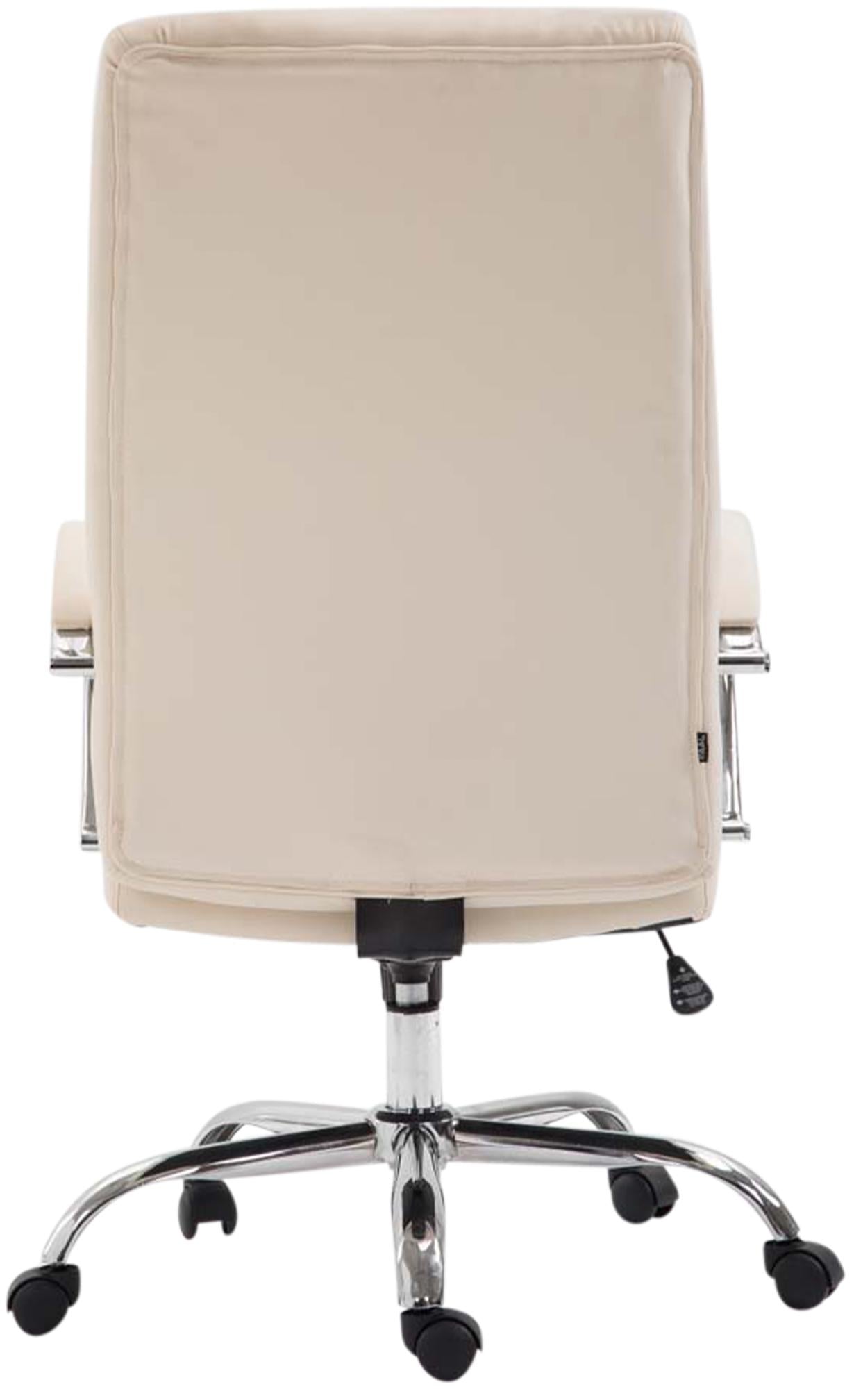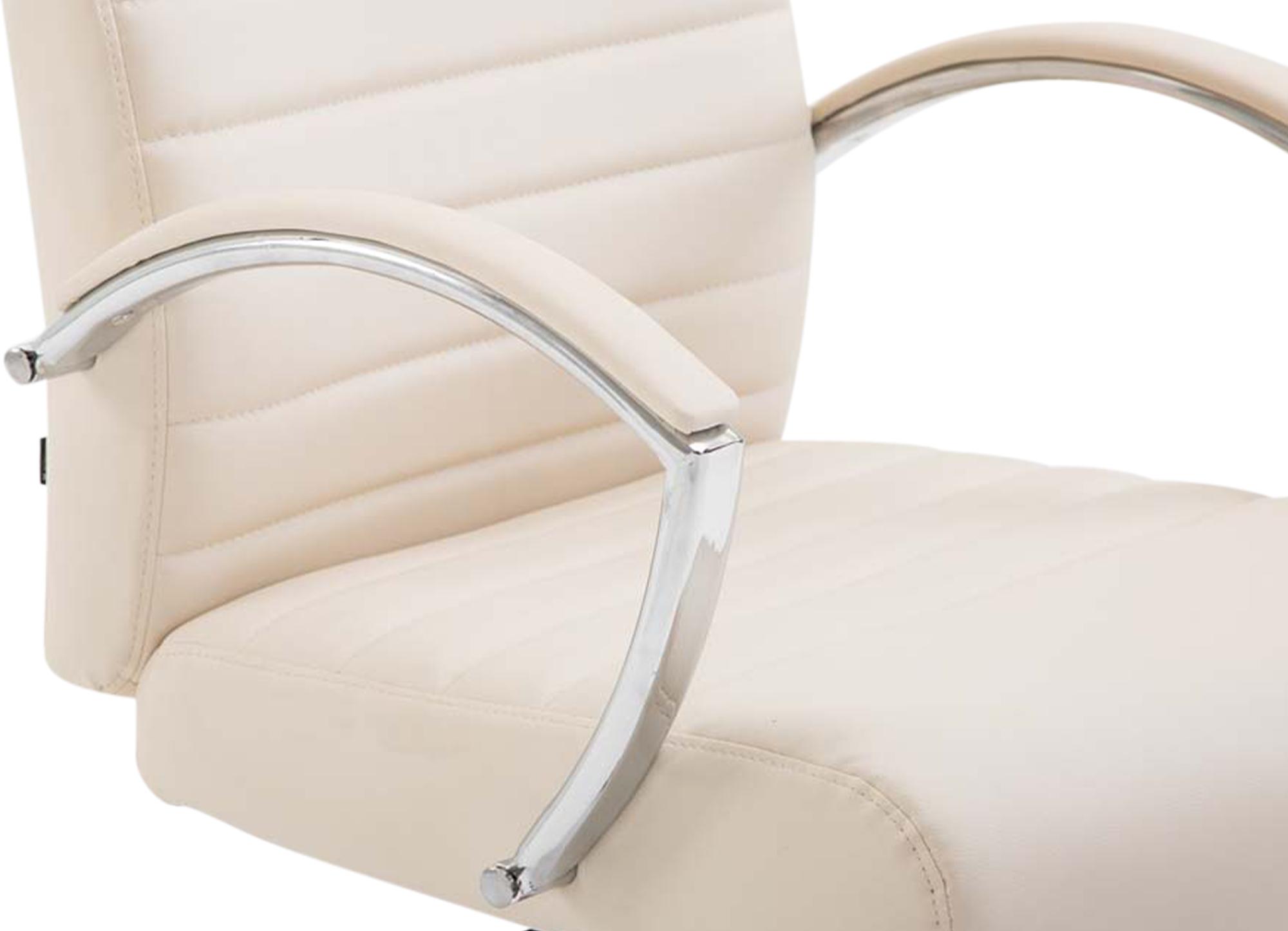 Fauteuil de bureau mécanisme d'inclinaison accoudoirs coutures décoratives en PVC crème et métal chromé 10_0006999