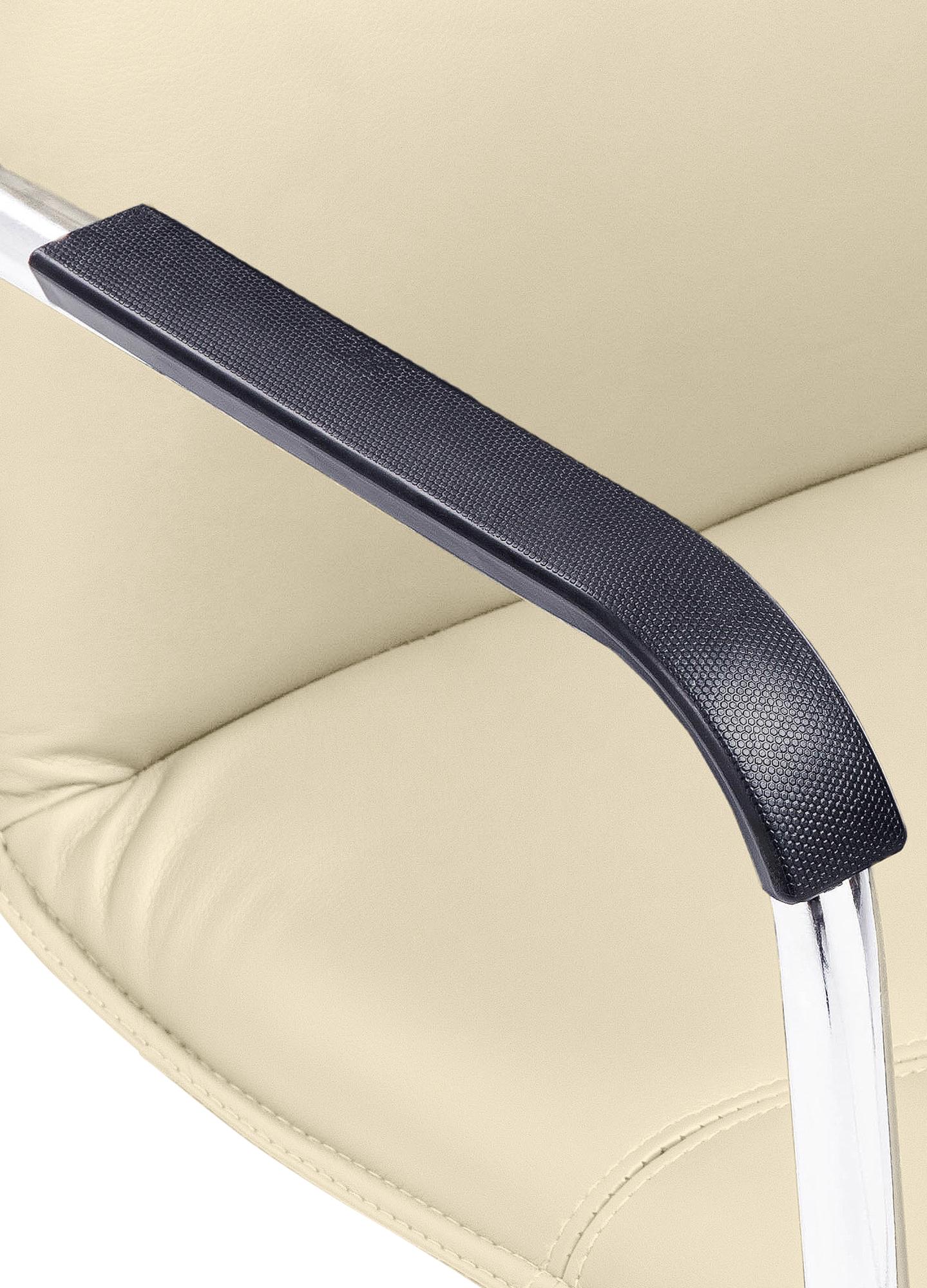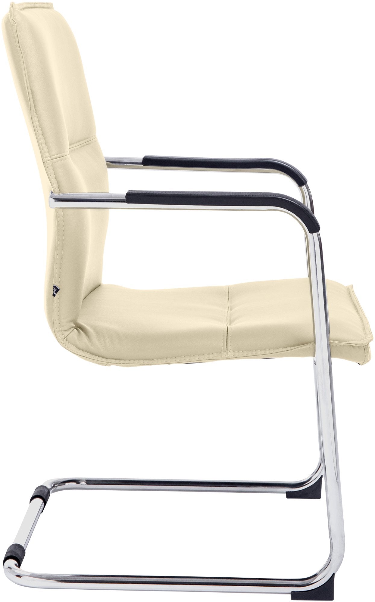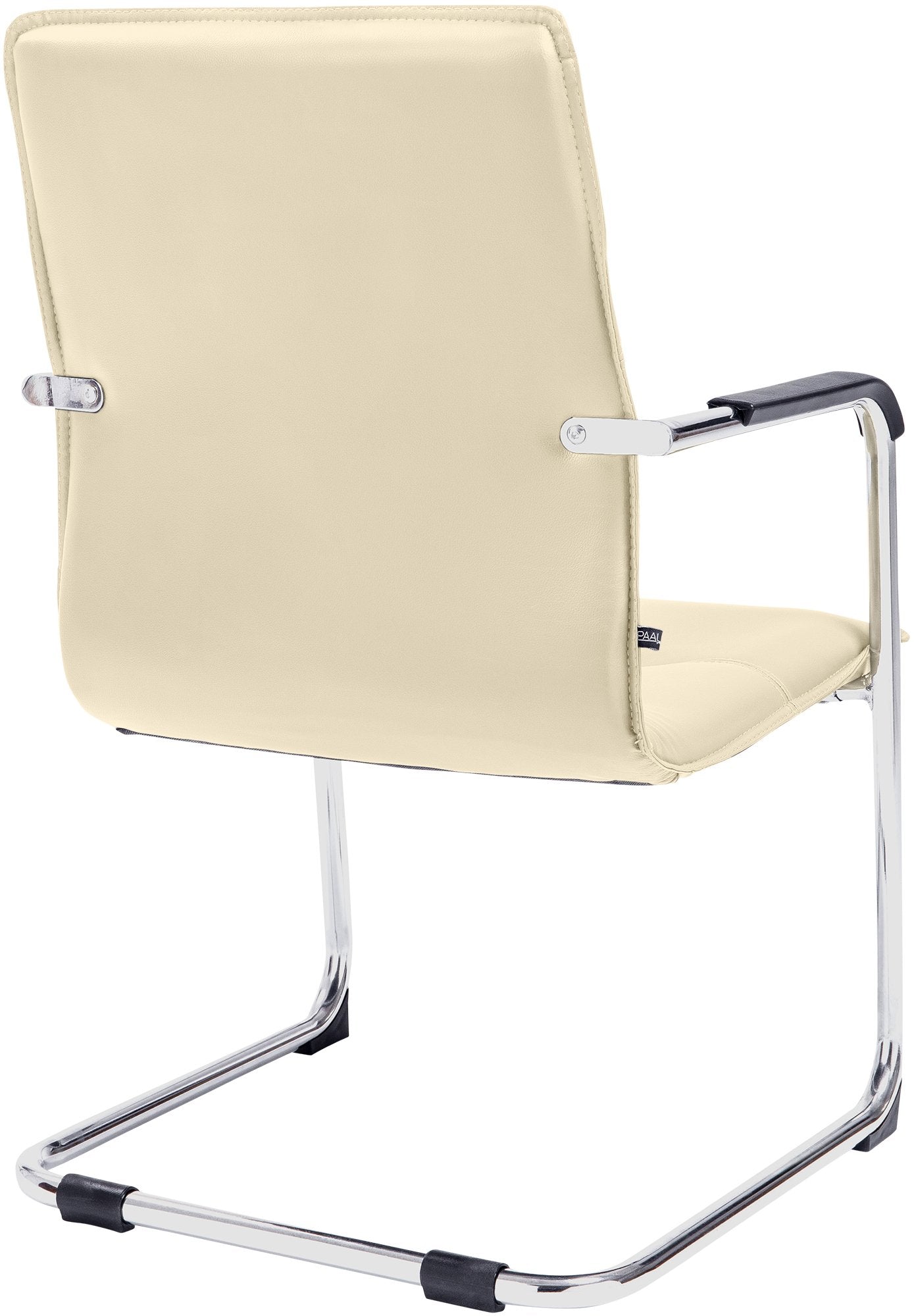 Chaise de bureau fauteuil visiteur avec accoudoirs en PVC crème et métal aspect chromé 10_0007705