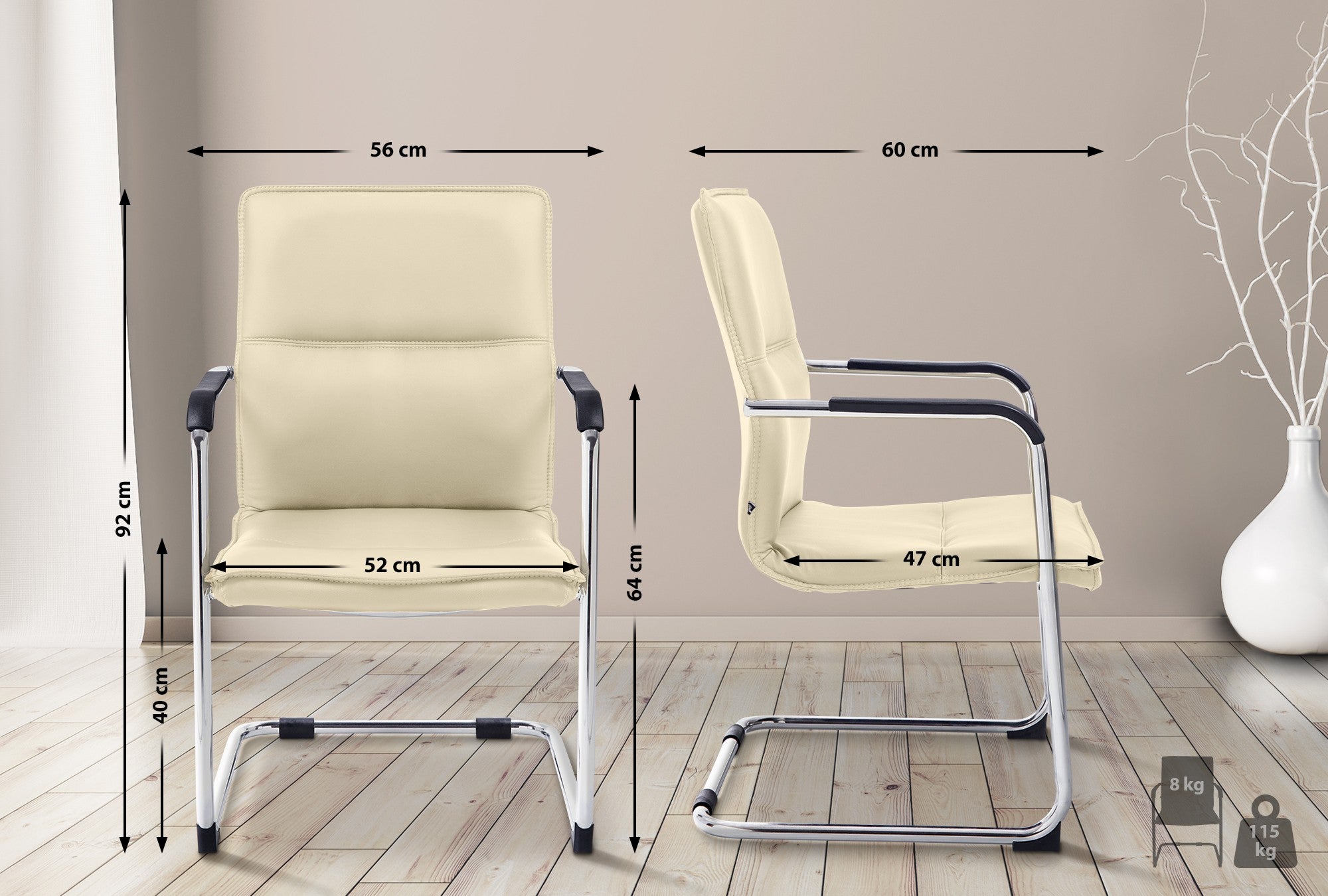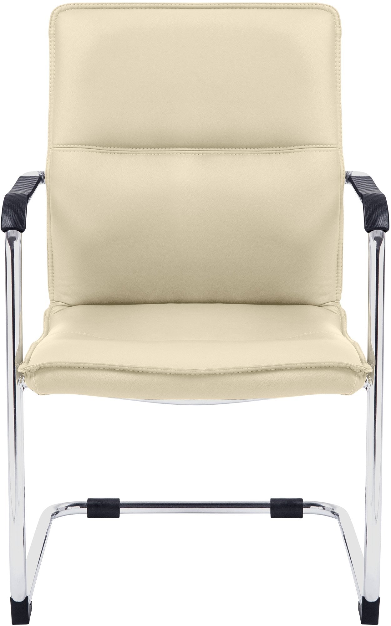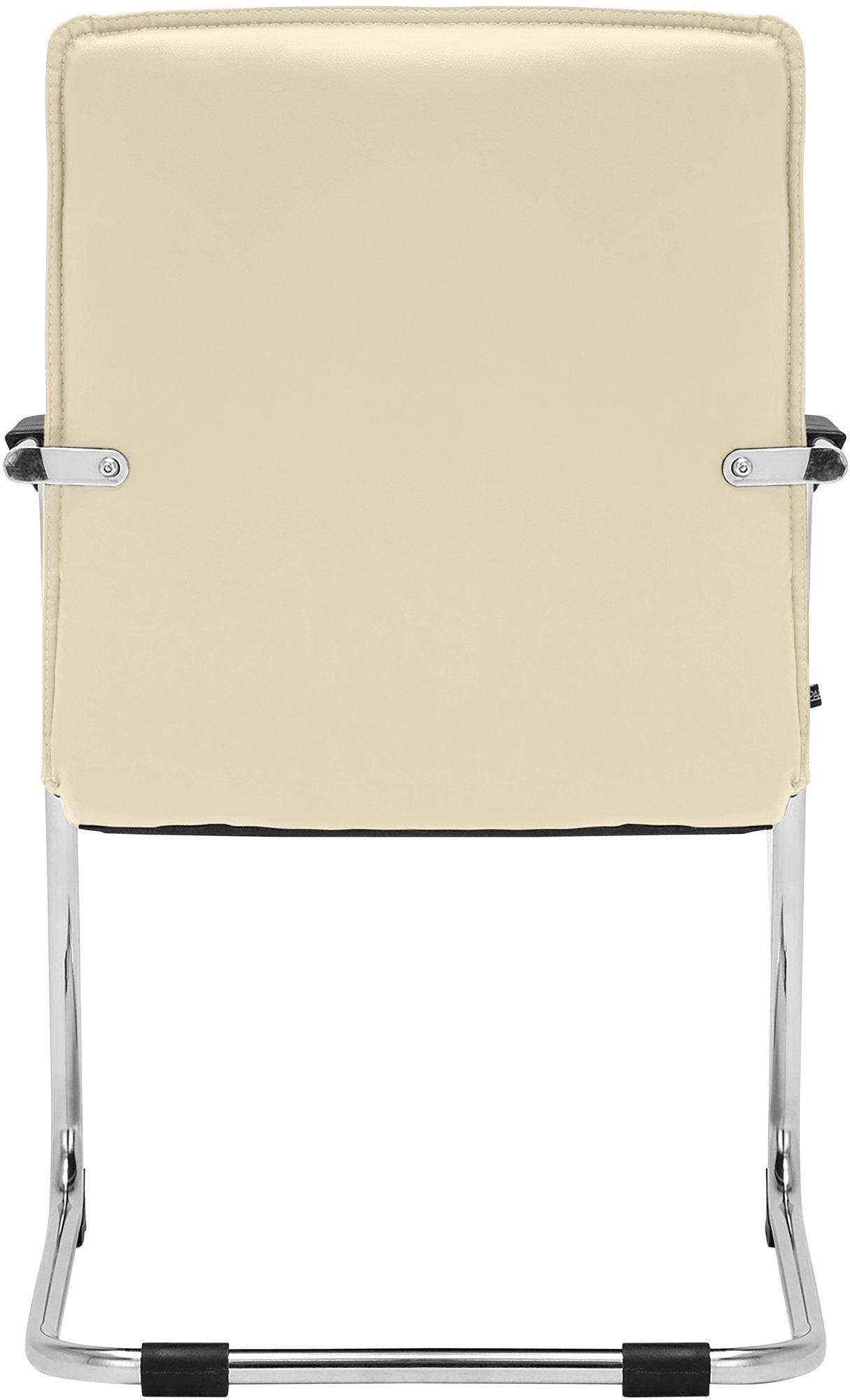 Chaise de bureau fauteuil visiteur avec accoudoirs en PVC crème et métal aspect chromé 10_0007705